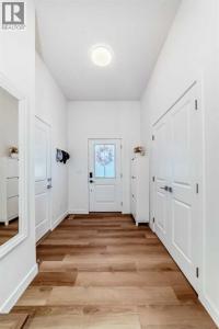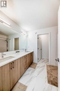 This impressive two-storey home in Wildflower offers the perfect blend of modern design and income potential with its walk-up legal basement suite. With over 1,650 sq ft above grade, the main home features an open-concept layout designed for family living and entertaining. The central kitchen boasts stone counters, an island with seating, and flows seamlessly into the dining and living areas. Upstairs, the primary bedroom is a private retreat with a large walk-in closet and spa-inspired ensuite with dual vanities, alongside two additional bedrooms, a full bath, and convenient upper-level laundry.Set on a sunshine lot backing onto green space, the home is filled with natural light and offers a rear deck for outdoor enjoyment. The walk-up basement legal suite is a standout feature, providing its own private entrance, full kitchen, living room, spacious bedroom, full bath, and laundry. Whether you’re looking for a mortgage helper, a space for extended family, or an attractive rental opportunity, this legal suite delivers versatility and value.Additional highlights include high ceilings, smart home features, an attached double garage,. With schools, shopping, and parks nearby, this property combines comfort, convenience, and financial flexibility—making it a rare find in Airdrie. The basement suite is currently listed for rent. (id:6769)
