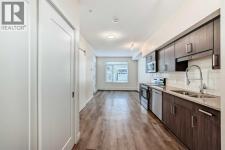 Welcome to Eighty5Nine by Morrison Homes – stylish condo living in Calgary’s sought-after Upper West Side. This main-floor 1-bedroom unit features a private entrance, open-concept layout, luxury vinyl plank flooring, and a sleek galley kitchen with quartz counters and stainless steel appliances. A sliding barn door opens to a bright bedroom with a desk nook, large closet, and 4-piece bath. Enjoy in-suite laundry, ample storage, and your own titled heated parking stall with direct unit access. Relax on your front patio with BBQ hookup, or gather in the landscaped courtyard. Steps from shops, dining, transit, parks, and pathways, with easy downtown access and a quick escape to the Rockies – this is West Side living at its finest. (id:6769)