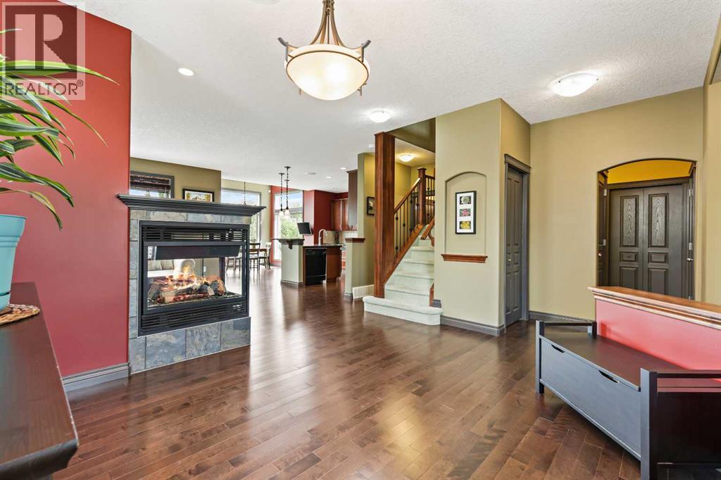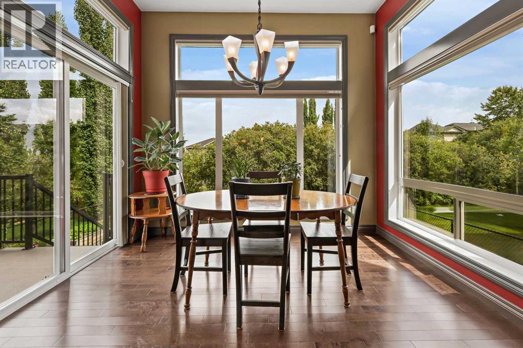 Welcome to this beautifully maintained original owner home in the highly sought-after community of Crestmont, Calgary. This bright and open-concept 2-storey features a widened double attached garage, spacious driveway, and a beautifully landscaped yard that backs directly onto a gorgeous green space with a year-round stream, offering peaceful privacy. Step inside to soaring 9-ft ceilings and a sun-filled main living area highlighted by three massive windows that flood the space with natural light. A spacious flex room greets you at the entrance. The gourmet kitchen is a chef’s delight, with brand new stainless steel fridge and stove appliances, granite countertops, a huge center island, a breakfast bar, and tile backsplash. A cozy 3-sided glass fireplace adds warmth and charm to the living and dining spaces. Upstairs, the large bonus room features stunning vaulted ceilings, creating an impressive space to relax or entertain. The primary bedroom offers high ceilings, oversized windows with views to the green space, and a unique step-up nook perfect for reading or quiet reflection. The ensuite includes an air-jetted tub, separate shower, and a walk-in closet with built-in organizers. A 4-piece main family bathroom and two additional generously sized bedrooms complete the upper level. The massive unfinished basement features high 9-ft ceilings and three large windows – ready for your future development. This quiet, family-friendly location offers the best of natural beauty and community living. A true gem in one of Calgary’s most desirable neighborhoods! (id:6769)