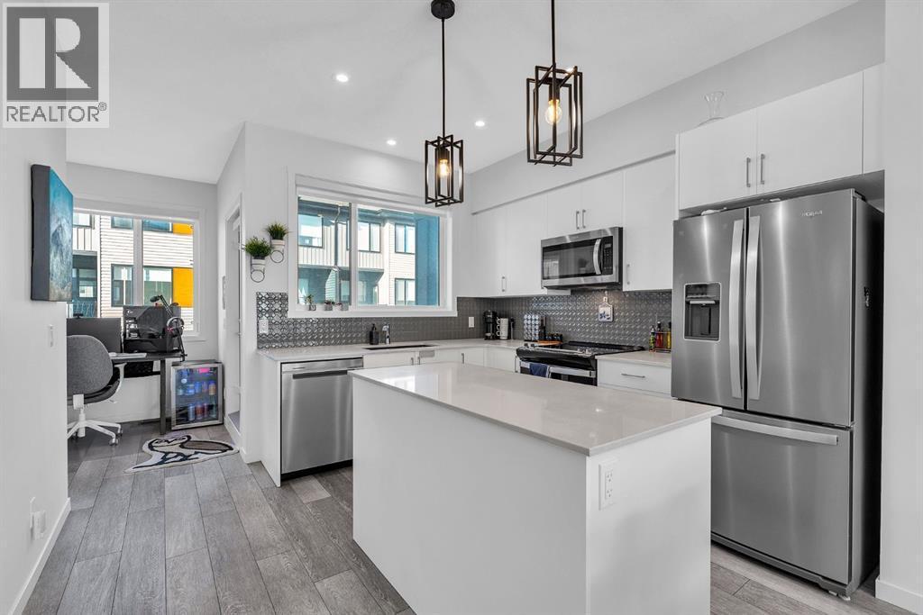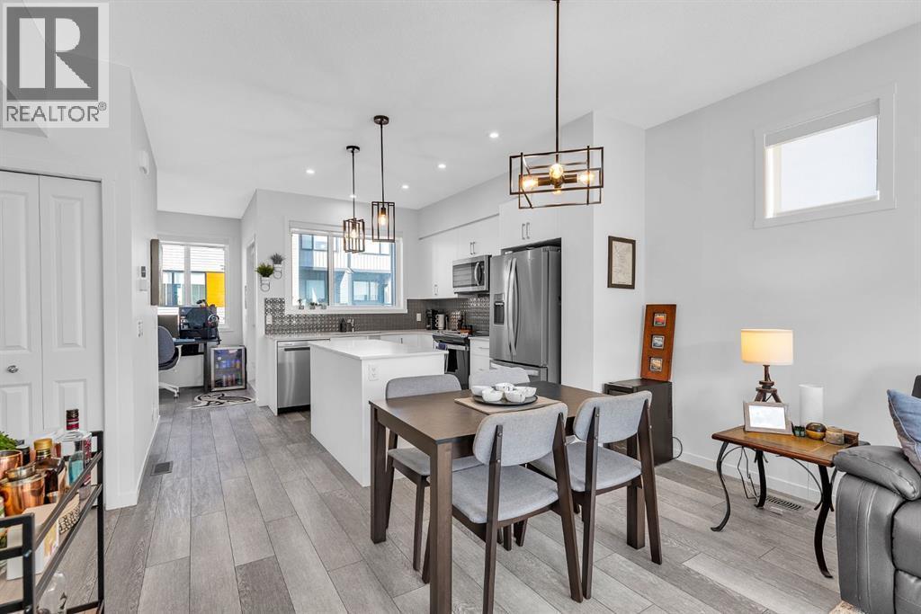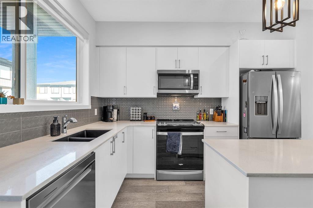 **Open House - Sunday Oct 5, 1:00 pm - 3:00 pm** Welcome to this stunning south-facing end-unit townhouse located in the vibrant community of Cornerstone in NE Calgary. With 4 bedrooms, 2.5 bathrooms, and central A/C, this spacious and stylish home is designed for comfort, flexibility, and modern living. On the lower floor, you’ll find a versatile bedroom/flex space—perfect for guests, remote work, or a home gym. The double attached garage offers everyday convenience and additional storage. Head upstairs to the bright, open-concept main floor with 9ft ceilings, featuring a sleek kitchen with quartz countertops, stainless steel appliances, and a pantry. The kitchen flows seamlessly into the dining area and living room, creating an ideal space for both daily life and entertaining. A rear flex room provides even more options for work or relaxation, complete with a half bath and access to a private covered balcony. The upper level boasts a spacious primary bedroom with walk-in closet and a 3-piece ensuite. Two additional generous bedrooms, a full 4-piece bathroom, and convenient upper-level laundry complete the top floor. Additional features include a beautifully landscaped courtyard, ample visitor parking, and close proximity to parks, shops, future schools, and public transit. Located just minutes from Stoney Trail and Calgary International Airport, commuting and travel are a breeze. Don’t miss your opportunity to own this beautifully designed, move-in-ready townhouse in one of Calgary’s most connected and growing communities. Schedule your private viewing today! (id:6769)