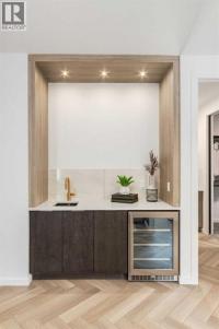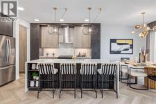 WHEN A HOUSE STARTS OUT AS A SHOWHOME, YOU NOTICE—THE DETAILS ARE SHARPER, THE FINISHES BOLDER. This Homes by Avi build carries the kind of features you rarely see offered together—deliberate, dramatic, and designed to impress. Now, instead of open house hours, it’s ready for its first owner, with possession at the END OF NOVEMBER.The main floor begins with an office that doesn’t apologize for being front and center. Framed in GLASS-PANEL WALLS and finished in a bold black palette with a COFFERED CEILING overhead, it’s designed to be on display—equal parts workspace and showpiece. From there, herringbone-pattern LUXURY VINYL PLANK flooring pulls you through the open plan: past the WATERFALL QUARTZ ISLAND and Silgranit sink in the kitchen, into a dining area that opens through a three-panel glass door to the 14’ x 10’ DECK with gas line. The living room centers on a FIREPLACE FEATURE WALL clad in vertical wood slats stained to match the dark kitchen cabinetry, dramatic and grounding all at once.Upstairs, the BONUS ROOM vaults high, finished with a wet bar and fridge so the space lives just as easily for movie marathons as it does for casual evenings in. The master bedroom takes luxury further: DUAL VANITIES frame a SOAKER TUB beneath a wide window, paired with a glass shower that feels more spa than standard. From there, the flow continues into a walk-in closet fitted with CUSTOM WOOD SYSTEMS and large enough for a central bench—then on to a laundry room finished with COUNTER, SINK, AND CABINETRY that look as considered as the rest of the home. Two more bedrooms, each with their own walk-in closet, and a full bath round out the level.The lower level is fully finished as a LEGAL BASEMENT SUITE, complete with its own kitchen, FULL APPLIANCE PACKAGE, laundry, and private entry. Independent systems—including a sub-panel and second furnace—make it practical and comfortable for multigenerational living, long-term guests, or rental income.This was never a standard b uild. A SPRINKLER SYSTEM, TANKLESS HOT WATER, 200-amp electrical service, GARAGE MAN DOOR, and AIR CONDITIONING confirm its showhome pedigree, while glass stair railings and designer finishes tie every floor together in one cohesive statement.Set on a SOUTH-FACING LOT in Walden, the location matches the home’s intent. JUST A BLOCK FROM WALDEN PONDS, PATHWAYS, AND PARKS, it gives you instant access to trails and greenspace, while schools, shopping, and dining sit minutes away. Quick routes via Macleod Trail and Stoney keep the rest of the city in easy reach.Showhome polish. Real-life readiness. This one is complete from top to bottom. (id:6769)