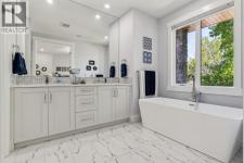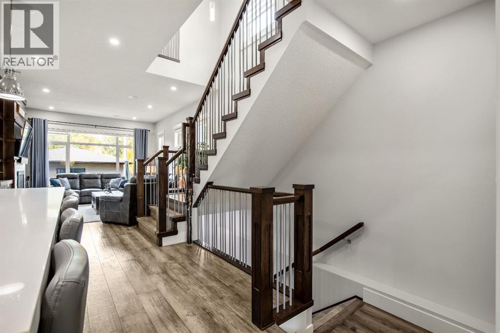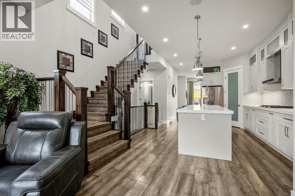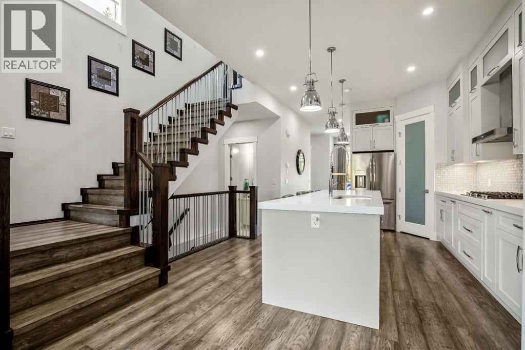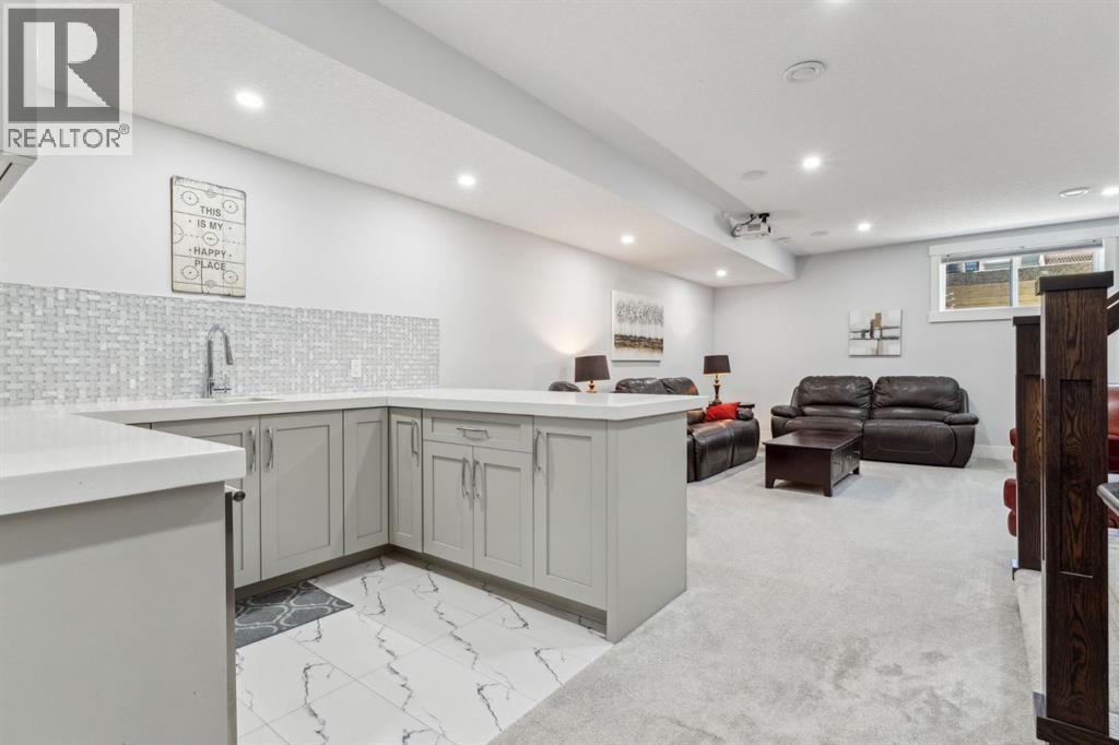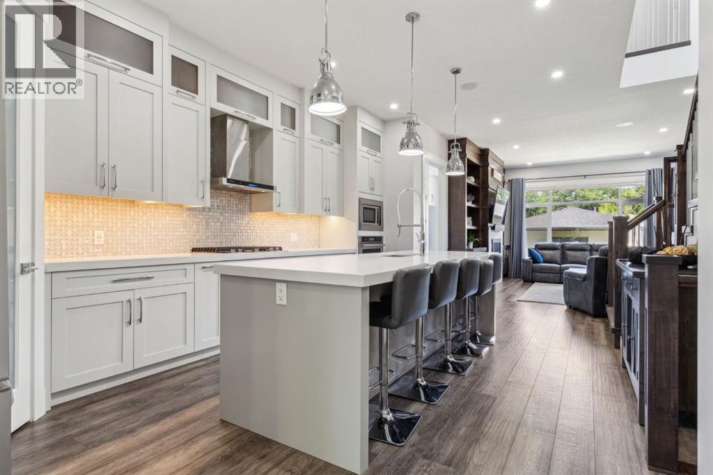 ***OPEN HOUSE SATURDAY 12PM-2PM*** Boasting over 3,300 developed sq ft this impeccable DETACHED home is situated on a quiet picturesque, tree-lined street. As you approach you will notice the masterfully crafted curb appeal, exposed aggregate walkway and attention to detail. You are then greeted by soaring 10-foot ceilings, gleaming hardwood floors and a bright dining room. The central gourmet kitchen is a focal point with custom cabinets that reach to the ceiling, including pull outs and glass inserts, gorgeous 2 ¼” Quartz counters, under cabinet lights, plenty of storage with a corner pantry, and high-end SS appliances including a gas cooktop, built-in wall oven/microwave, chimney style hood fan and Bosh dishwasher. The expansive 10 ft island is ideal for entertaining and seamlessly connects to the spacious living room. The spacious living area is showcases a gas fireplace with stone surround and a built in detail. The main is complete with the powder room tucked away for privacy and a well thought out mud room with custom built-ins. The private well sized SUNNY WEST backyard has plenty of grass, an exposed aggregate patio and path plus a convenient BBQ gas line. Making it the perfect place to enjoy the outdoors. As you head to the second level you will notice the elegant railing, and 9’ ceilings. There are 2 well sized bedrooms with walk-in closets including custom built-ins, a nicely appointed 4 piece bath, and a convenient upper laundry room with sink and plenty of cabinets for storage. The primary is a true sanctuary with large windows, a private balcony to enjoy morning coffees, and a big walk-in closet with built-ins. French doors lead to your luxurious ensuite. This spa inspired space includes heated tile floors, a steam shower, freestanding tub, a private water closet, dual sinks and comfort height stone counters. The fully developed lower level with in SLAB HEAT, is fabulous for those Alberta winters. There is a large rec room showcasing a projector and 100 inch screen with custom cabinetry, perfect for movie night or your favorite sporting events. This space is complete with a sleek wet bar including beverage fridge. An additional fourth bedroom with walk in closet and a full 4-piece bathroom. Other noteworthy features are the Double detached garage with 220 wiring, the comforts of air conditioning, upgraded solid core doors, flush mount vents, built in speaker system, security cameras, upgraded roof with full ice and water shield membrane, upgraded roof ventilation and added R50 blown insulation creating energy efficiencies. Just minutes from excellent schools, athletic fields, and Westhills Shopping Centre, including Save-On-Foods, GoodLife Fitness, Cineplex, The Keg, Tim Hortons, and much more. Enjoy quick access to Stoney Trail, Sarcee Trail, and downtown. Don’t miss your chance to own this pristine home. View the virtual tour or book your private showing today! (id:6769)