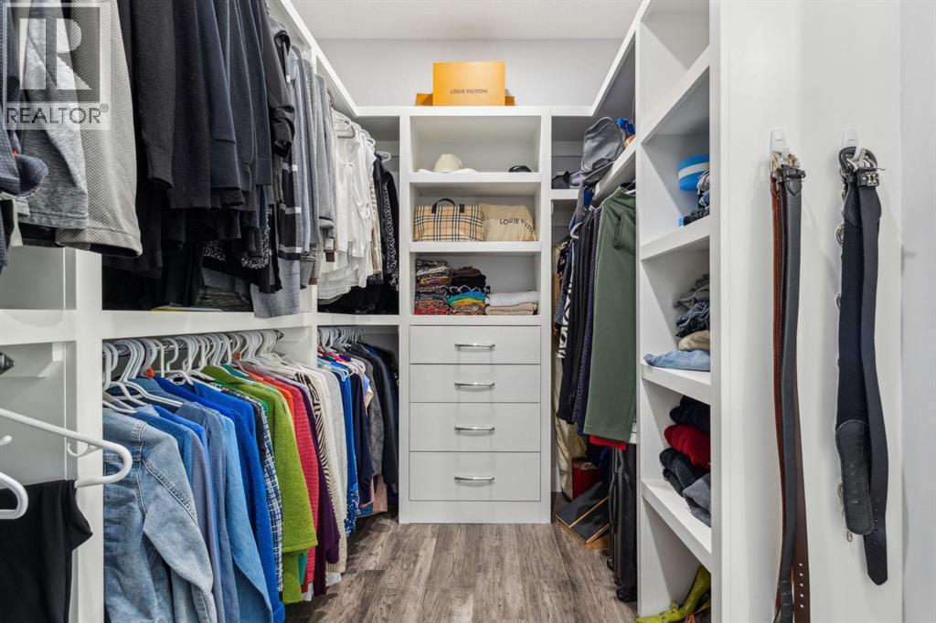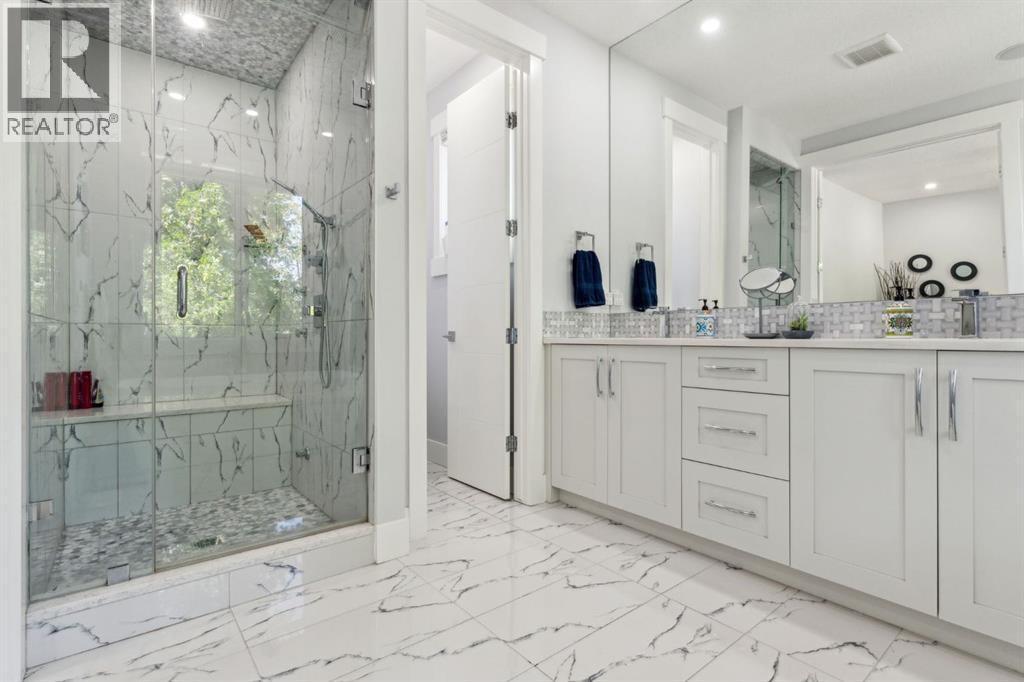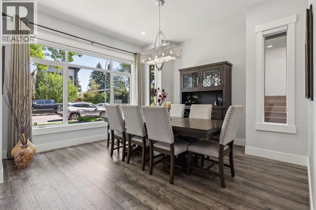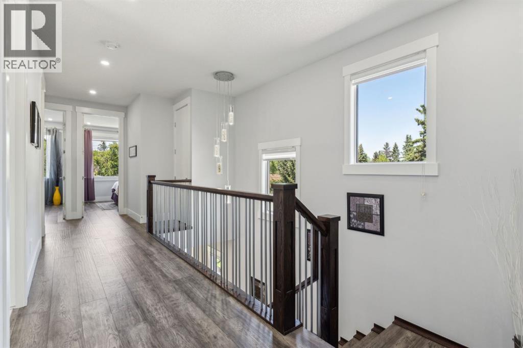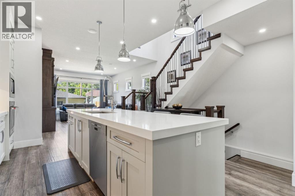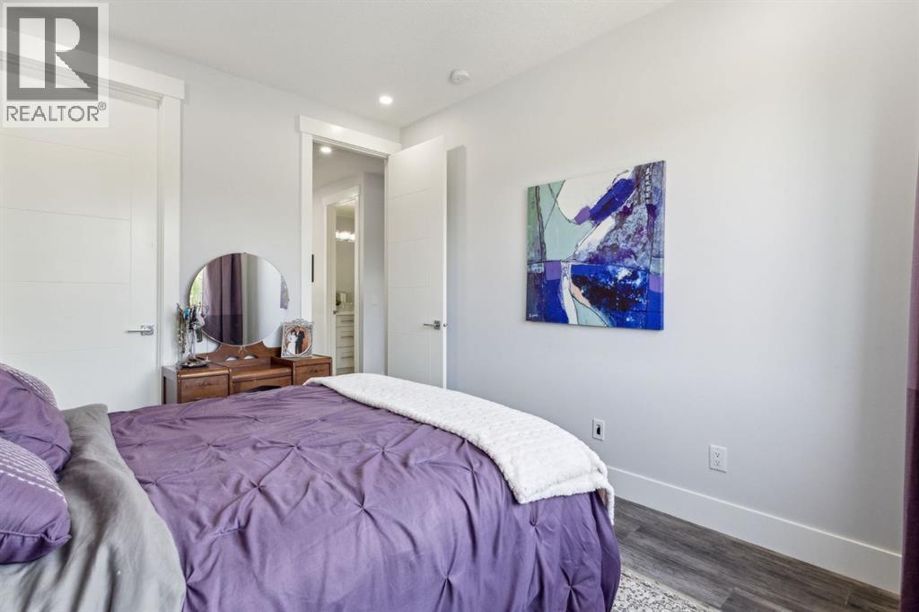 ***OPEN HOUSE SATURDAY 12PM-2PM*** Boasting over 3,300 developed sq ft this impeccable DETACHED home is situated on a quiet picturesque, tree-lined street. As you approach you will notice the masterfully crafted curb appeal, exposed aggregate walkway and attention to detail. You are then greeted by soaring 10-foot ceilings, gleaming hardwood floors and a bright dining room. The central gourmet kitchen is a focal point with custom cabinets that reach to the ceiling, including pull outs and glass inserts, gorgeous 2 ¼” Quartz counters, under cabinet lights, plenty of storage with a corner pantry, and high-end SS appliances including a gas cooktop, built-in wall oven/microwave, chimney style hood fan and Bosh dishwasher. The expansive 10 ft island is ideal for entertaining and seamlessly connects to the spacious living room. The spacious living area is showcases a gas fireplace with stone surround and a built in detail. The main is complete with the powder room tucked away for privacy and a well thought out mud room with custom built-ins. The private well sized SUNNY WEST backyard has plenty of grass, an exposed aggregate patio and path plus a convenient BBQ gas line. Making it the perfect place to enjoy the outdoors. As you head to the second level you will notice the elegant railing, and 9’ ceilings. There are 2 well sized bedrooms with walk-in closets including custom built-ins, a nicely appointed 4 piece bath, and a convenient upper laundry room with sink and plenty of cabinets for storage. The primary is a true sanctuary with large windows, a private balcony to enjoy morning coffees, and a big walk-in closet with built-ins. French doors lead to your luxurious ensuite. This spa inspired space includes heated tile floors, a steam shower, freestanding tub, a private water closet, dual sinks and comfort height stone counters. The fully developed lower level with in SLAB HEAT, is fabulous for those Alberta winters. There is a large rec room showcasing a projector and 100 inch screen with custom cabinetry, perfect for movie night or your favorite sporting events. This space is complete with a sleek wet bar including beverage fridge. An additional fourth bedroom with walk in closet and a full 4-piece bathroom. Other noteworthy features are the Double detached garage with 220 wiring, the comforts of air conditioning, upgraded solid core doors, flush mount vents, built in speaker system, security cameras, upgraded roof with full ice and water shield membrane, upgraded roof ventilation and added R50 blown insulation creating energy efficiencies. Just minutes from excellent schools, athletic fields, and Westhills Shopping Centre, including Save-On-Foods, GoodLife Fitness, Cineplex, The Keg, Tim Hortons, and much more. Enjoy quick access to Stoney Trail, Sarcee Trail, and downtown. Don’t miss your chance to own this pristine home. View the virtual tour or book your private showing today! (id:6769)
