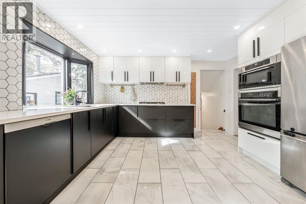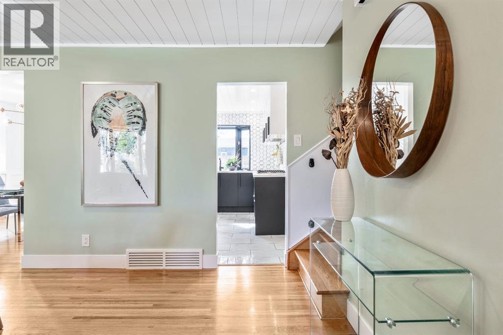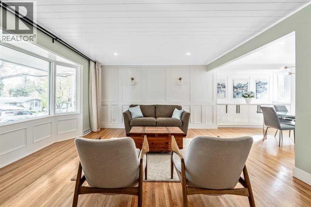 **OPEN HOUSE Saturday October 4 from 1-3 PM** Charleswood Charmer with Updates! | Nestled on a peaceful, tree-lined street right in the heart of Charleswood, this beautifully updated four-level split is the perfect mix of charming character, modern convenience, and a welcoming, family-friendly community. With over 1,950 square feet of thoughtfully developed space, this home has been lovingly upgraded over the years to be both warm and stylish, and mechanically efficient. Step inside and you'll be greeted by gorgeous hardwood floors, rustic shiplap ceilings and wood panelled walls, and a bright, open-plan living space that feels inviting and effortlessly livable. The sleek designer kitchen is a dream for busy family life, with two-tone modern cabinetry, quartz countertops, stainless steel appliances, and plenty of counter space. The adjacent dining and living areas are both spacious and flexible, filled with natural light that creates a cheerful and homey vibe. Upstairs, you’ll find three comfortable bedrooms and a beautifully updated family bathroom. The lower level has a versatile fourth bedroom (or home office) along with an updated three-piece bathroom and fabulous dual purpose laundry-mudroom that keeps everything organized and the mess at bay. Check out the cozy family room in the lower level, with a stylish electric fireplace complimented by a wooden slat wall, and additional flexible space that’s perfect as a play space or exercise area. Out back, the south facing backyard feels like your own private oasis—complete with mature, fruit-bearing trees, lush landscaping, and enough space for outdoor fun and entertaining. The home also features a heated double detached garage in addition to the single attached garage, giving you plenty of parking and storage options. Located in one of Calgary’s most desirable NW neighbourhoods, you’re just minutes from the University, K-9 schools, parks, pathways, and all the amenities you could need. Don’t miss your chance to ow n this beautifully updated charmer in ever-popular Charleswood! (id:6769)