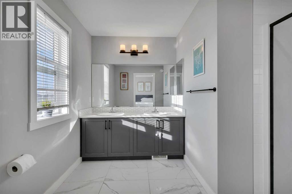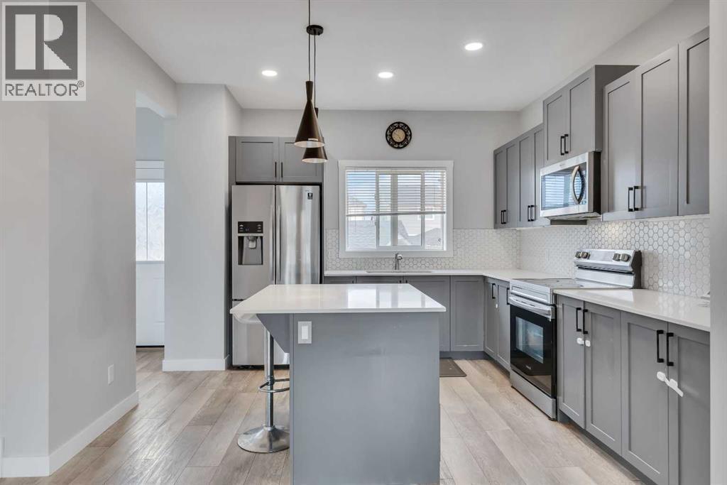 Introducing this MAGNIFICENT lane home located in the highly desirable community of Hillcrest in Airdrie. This exceptional property offers a spacious and well-appointed living space, perfect for those seeking comfort and convenience. The kitchen is a true centerpiece, featuring an island with QUARTZ COUNTERTOPS, ADDITIONAL KITCHEN LIGHTING, 42” UPPER CABINETS, a built in microwave, STAINLESS STEEL appliances, and plenty of pan drawers. Spanning over 1450 sq ft above grade and over 2,000 sq ft of developed living space; this home boasts an excellent open concept floor plan on the main floor, which includes a generous kitchen, island, a sizable living room, nook, and a conveniently located half bath. The upper floor features three spacious bedrooms and 2.5 baths, each offering ample space for relaxation and privacy—ideal for families or hosting guests. The primary bedroom is a true retreat, complete with a HUGE WALK-IN CLOSET and EN-SUITE bathroom for your convenience. Step into the backyard and discover a tranquil oasis meticulously designed for relaxation and entertainment. The charming front porch is perfect for your evening unwind, while the back deck provides an inviting space for summer barbecues or simply enjoying the outdoors. Parking will never be an issue with a dedicated DOUBLE CAR GARAGE, offering convenience and protection during the winter months and lots of street parking Situated in a desirable neighborhood, this home is close to a wide range of amenities, including SCHOOLS, PARKS, WALK PATH, SHOPPING CENTERS, making everyday errands and outings effortless. Take advantage of the nearby recreational opportunities and immerse yourself in this wonderful family-oriented community. Whether you're looking for a savvy investment or the perfect family home, this property is truly a rare find. The FULLY DEVELOPED ILLEGAL BASEMENT offers more potential for this versatile home. From short term AIRBNB rentals to Long term Rentals or just extra family s pace. Don't miss out on this fantastic (id:6769)