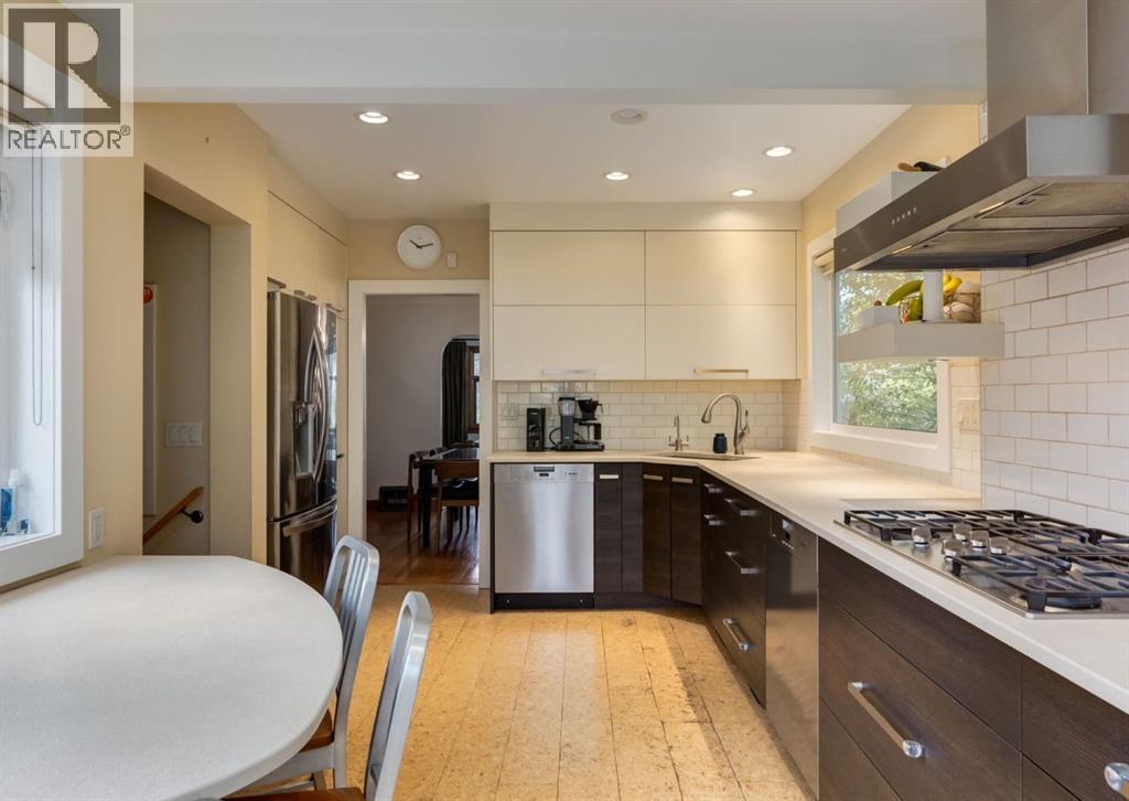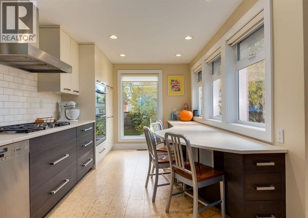 OPEN HOUSE SUNDAY (October 5 from 1-3 PM)! Renovated character bungalow on a full-sized lot in Crescent Heights. Situated on a 50’ x 120’ lot with R-CG zoning, no restrictive covenants, and alley access on two sides, this property offers incredible flexibility for comfortable living today and future development opportunities. Inside, the front living room showcases custom millwork, hardwood floors, a gas fireplace, and a striking wallpaper feature wall. The renovated kitchen is a true highlight, equipped with top-of-the-line Miele appliances including dual dishwashers, a gas cooktop with professional range hood, wall oven, and a speed oven (microwave). Quartz countertops, classic subway tile backsplash, under-cabinet lighting, and a large seating area overlooking the backyard make this kitchen as functional as it is stylish. A dedicated dining room sits adjacent to the kitchen. Two spacious bedrooms share a main floor bathroom finished with timeless hex tile and an updated vanity. At the back of the home, the entry and staircase placement create the potential to develop a suite in the basement (subject to City of Calgary approval). The lower level is already developed with a rec area, office, laundry room, playroom or gym, and guest quarters (note: no egress window). Step outside to a landscaped backyard with lush grass, a large patio, BBQ gas line, and even a climbing wall play structure. An insulated, oversized double garage adds convenience and value. Live in Crescent Heights—one of Calgary’s most sought-after inner-city communities, known for its walkability, Rotary Park, proximity to downtown, and vibrant amenities. Floor plans and a 3D tour are readily available, providing a glimpse into this stylish bungalow. (id:6769)