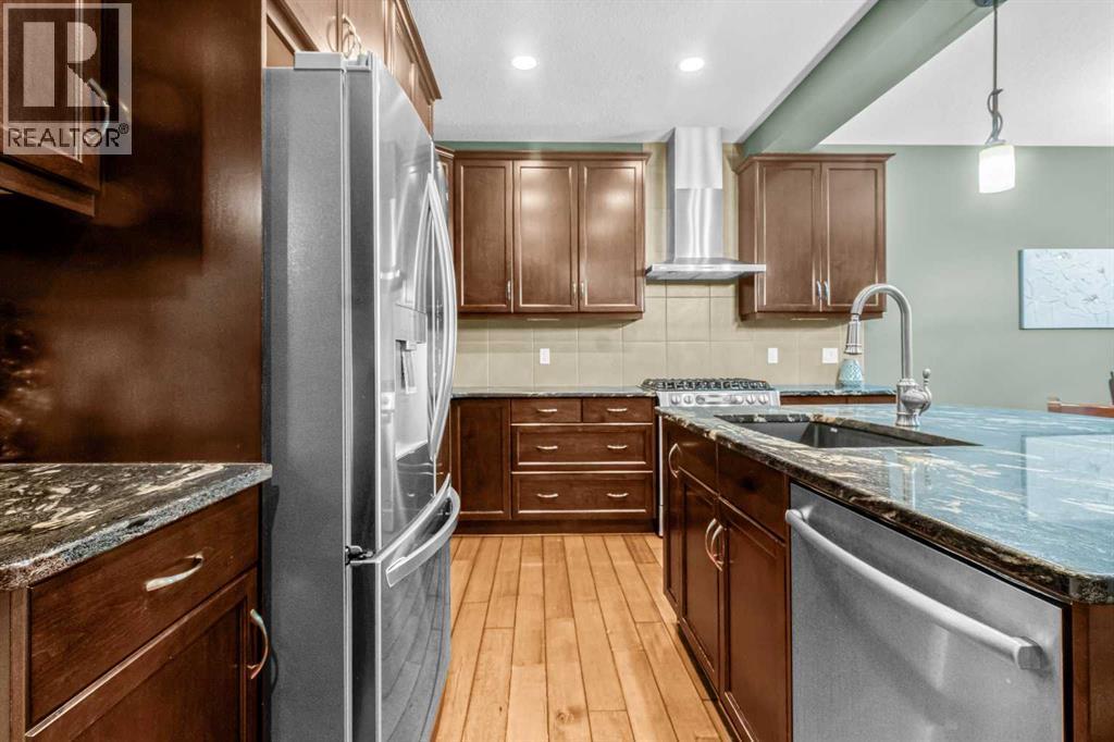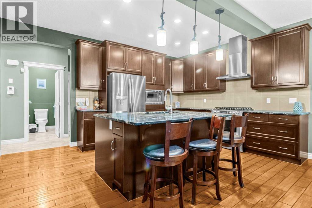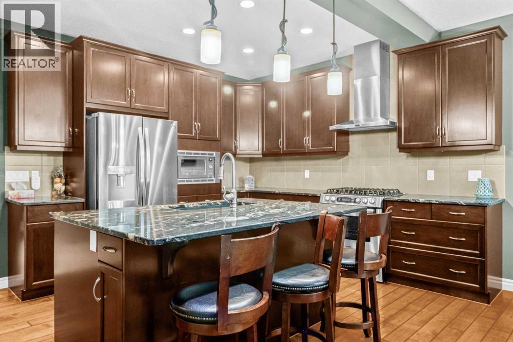 ** OPEN HOUSE SATURDAY AND SUNDAY, OCTOBER 4 AND 5TH, FROM 2 PM TO 4 PM**A UNIQUE GEM! Welcome to luxury living in the heart of Hillcrest, one of Airdrie's most sought-after communities. As you step into this stunning 3-bedroom home, you are greeted by a grand foyer that opens onto a breathtaking open-concept main floor. The kitchen is a chef's dream! Designed to impress with elegant cabinetry, granite countertops, designer lighting, and premium appliances, including a built-in microwave and gas stove, all accented by a huge island with an eating bar. The ultimate culinary space for family bonding or stylish hosting. It effortlessly transitions into an open-concept layout that extends to the generous dining and living spaces, perfect for entertaining. Throughout the main floor, engineered hardwood flooring enhances the sense of flow and style. The dining room and living room feature huge windows, allowing for loads of natural light and a 9-foot ceiling throughout the main floor. The rear living room features a stacked stone-finished gas fireplace with a classic mantle, while the adjoining dining area boasts a patio door that opens to the sunny, south-facing backyard. Enjoy the low-maintenance backyard oasis featuring a custom concrete patio and lush artificial grass, both in front and back of the home – perfect for relaxing or entertaining. A smart walk-around layout connects seamlessly to the mudroom, convenient half bath, and attached garage. Upstairs, you will find a spacious bonus room with a vaulted ceiling and a wet bar, ideal for a media lounge or children's retreat. Three bedrooms, with the primary bedroom having a walk-in closet and a lavish spa-like five-piece ensuite bathroom. The laundry is conveniently located on the upper level, just beside the bedrooms. The unfinished basement comes with standard windows, complemented by roughed-in plumbing, and presents endless opportunities for your personalized touches. The home also offers additional upgrades, in cluding central air conditioning and a water softener. This smoke-free, pet-free move-in-ready home is situated just steps away from great schools, scenic walking pathways, shopping centers, restaurants, and playgrounds, offering the perfect balance of community, comfort, and accessibility. With quick access to Deerfoot Trail, CrossIron Mills, Amazon shipping depot, and The Airport.  You’ll be well-connected to go anywhere you want to explore. Schedule your viewing today! (id:6769)