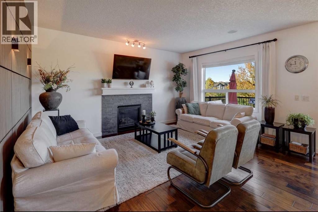 This beautifully finished, fully developed custom-built Shane Homes has something for everyone.As you enter, you’ll be greeted by soaring ceilings and rich hardwood flooring throughout the main floor. To the left, a spacious office with elegant French doors offers a perfect work-from-home setup. There is a 1/2 bath and wide entryway from the double attached garage to the right. The living room, complete with a stunning gas FIREPLACE, is ideal for relaxing after a long day or entertaining guests. The kitchen is a chef’s dream—featuring upgraded cabinetry, bright walk through pantry, GRANITE countertops, a gas countertop stove, built-in oven and microwave, and a massive central island. Just off the kitchen, step onto the serene, West facing back deck where you can take in beautifully landscaped views of the backyard, WALKING PATHS, and a peaceful POND with a fountain. There are gas BBQ hookups (lower patio as well) and stairs leading directly to the yard and path system.Upstairs, you'll find three generous secondary bedrooms, two built-in desk spaces perfect for students or workstations, and a cozy family room—ideal for movie nights or casual gatherings. The spacious primary suite is a private retreat, offering panoramic views, a luxurious 5-piece ensuite with a soaker tub, standalone shower, and a huge walk-in closet. A well-appointed laundry room and full 4-piece bathroom complete the upper level.The lower level includes a full kitchenette with an electric cooktop, refrigerator, dishwasher, and its own washer/dryer. The basement also has a large bedroom, 3-piece bathroom, a comfortable living area, and private access via sliding doors leading to a covered patio and the backyard.All of this, Hunter Douglas blinds, central vacuum, 3 zone heat and central AC, easy access to Highway 2/Calgary and more. This exceptional property truly has it all—space, style, location, and functionality. (id:6769)