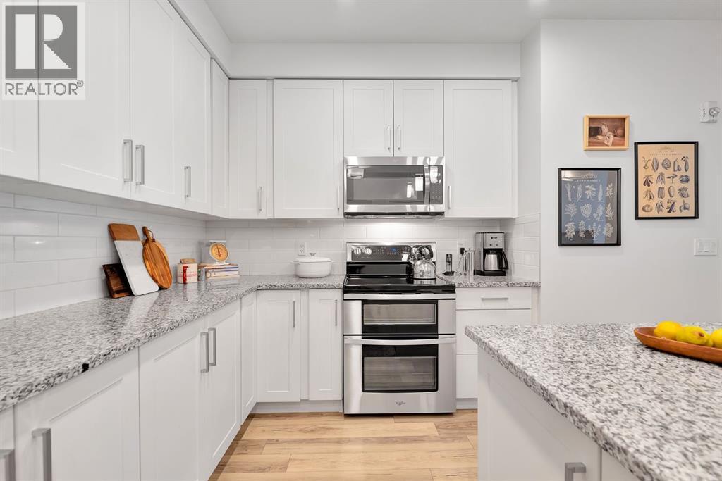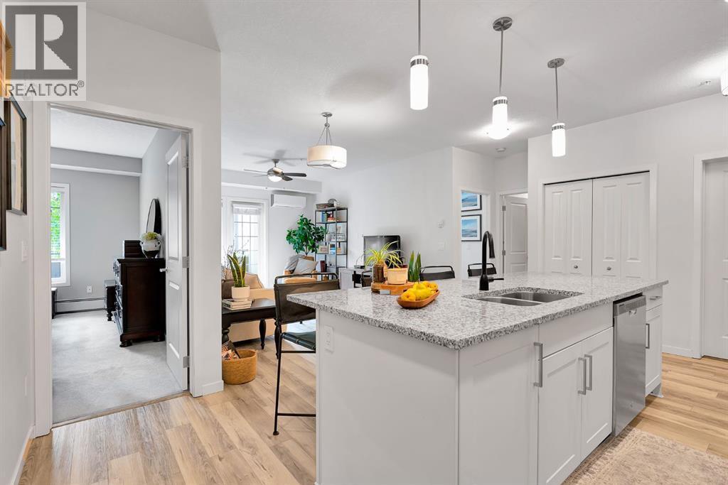 Owner occupied! Welcome to this meticulously maintained, luxury 2-bedroom, 2-bath condo in the desirable Sandgate complex of Mahogany, just steps from the beach and lake. Boasting 965 sq.ft. of beautifully designed living space, this south-facing 2nd-floor unit is flooded with natural light and framed by mature trees, offering privacy and a serene sanctuary. Inside, enjoy an open-concept layout connecting the living, dining, and kitchen areas—perfect for entertaining. The kitchen features white cabinetry, a stainless steel appliance package with an upgraded double stove, and ample built-in storage solutions. Recent updates include new LVP flooring, fresh paint, and an upgraded shower with a sliding glass door in the ensuite. The spacious master suite offers a walk-through closet leading to a stunning 3-piece ensuite, while the second bedroom provides flexibility for guests or a home office. Step out onto the semi-enclosed private balcony, complete with natural gas hookups for summer BBQs. Additional highlights include underground heated titled parking & storage, a fully equipped resident only gym, and a thoughtfully maintained community. This exceptional home combines style, comfort, and convenience—don’t miss this opportunity! (id:6769)
