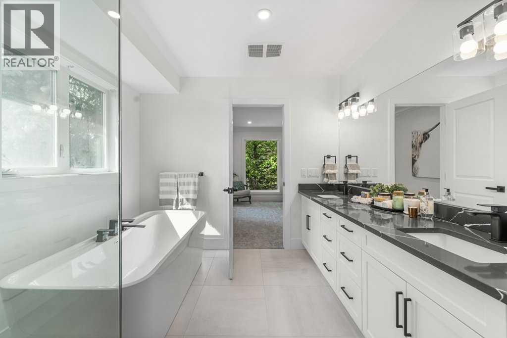 Light, elegance, and modern refinement define this beautifully reimagined residence in one of McKenzie Lake’s most coveted locations. Situated on a quiet cul-de-sac and occupying an oversized, lushly landscaped corner lot, this extensively renovated two-storey masterpiece offers over 3,700 sq. ft. of refined living space, a heated oversized double attached garage with 220V power, an extended driveway, and rare semi-private LAKE ACCESS to a shared dock used by only 6 other neighboring homes. Not only do you have a semi-private dock 150 steps away, but you are also steps away from the main beach club entrance for those days that your family craves a sandy beach!Inside, you are immediately enveloped by the home’s light and airy ambiance, accentuated by soaring ceilings, expansive windows, and a fresh, neutral palette. Every detail has been thoughtfully curated—from the modern black spindles and designer lighting to the elegant hardware and timeless finishes. The showpiece kitchen blends form and function with sleek quartz countertops, high-end stainless steel appliances, crisp white cabinetry, and a large breakfast bar that flows effortlessly into the dining area and cozy family room with a stunning gas fireplace.Upstairs, you'll find three generous bedrooms, including a serene and luxurious primary retreat with a spa-inspired ensuite featuring dual vanities, an oversized glass shower, and a deep soaker tub—all framed by beautiful modern tilework. The upper level also features a spacious bonus/family room complete with a wet bar, perfect for entertaining or relaxing evenings.Step outside into your private southwest-facing backyard oasis, featuring a large sun-drenched deck, hot tub, mature trees, and direct gated access to a semi-private lake pathway. The fully finished basement offers versatility and space, with a full bath, a large recreation/games area, and two additional rooms ideal for guests, home offices, or creative pursuits.Located just steps from th e lake, top-rated schools, tennis courts, hockey rinks, golf courses, and endless green space, this home offers the ultimate in lifestyle, luxury, and location. Don’t miss this rare opportunity to own a truly distinguished home in the heart of McKenzie Lake. (id:6769)