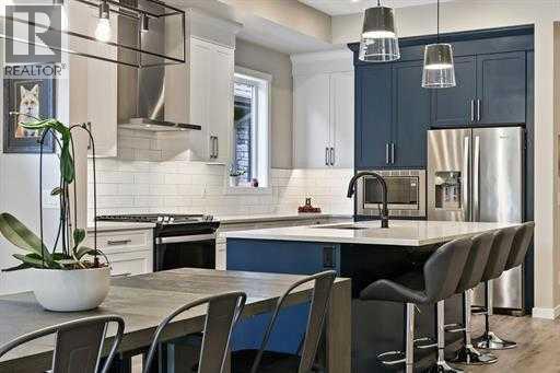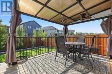 A Luxury Bungalow in the Heart of Cranston! Prepare to be absolutely captivated by this attached bungalow, a residence that perfectly balances refined elegance, modern comfort, and thoughtful design. Located in the highly sought-after community of Cranston, this remarkable home offers a lifestyle of ease and sophistication while being surrounded by nature and community amenities. To make this property even more unique, the attached unit next door has been fully customized for assisted mobility, presenting an exceptional opportunity for multigenerational living while maintaining privacy and independence for everyone. The open and airy main floor boasts soaring 10 ft. ceilings, warm luxury vinyl plank flooring, and grand 8’ doors that enhance the sense of space. The heart of the home is undeniably the kitchen, a stunning culinary haven that blends functionality with beauty. Thoughtfully designed with quartz countertops, elegant two-toned cabinetry and premium appliances, it’s a space that will inspire everything from casual family meals to gourmet creations. The spacious dining area is perfectly positioned for gathering with loved ones, while the adjacent living room is a showpiece in itself, featuring a striking gas fireplace that radiates warmth and charm. Remote-controlled blinds add both convenience and a sleek modern touch to the space. The primary suite is a private sanctuary, designed to offer rest and relaxation at the end of the day. The spa-like has dual vanities, a luxurious soaker tub, and an oversized walk-in shower and adjoining walk-in closet that exudes sophistication. The main floor is completed by a stylish 2-piece powder room, a well-appointed laundry area, and a mud room that connects directly to the oversized double attached heated garage, blending practicality with everyday comfort. The lower level is just as impressive, designed to be both inviting and versatile. A sprawling recreation area provides endless possibilities for relaxation or play, while a dedicated games and bar space featuring a full wet bar creates the perfect setting for entertaining. Three generously sized bedrooms, each with their own walk-in closets, offer comfort and privacy for guests or family members, and a beautifully finished 4-piece bathroom ties the space together with elegance and style. Step outside and discover your personal backyard retreat. The west-facing yard is thoughtfully landscaped and designed for enjoyment, featuring a large deck ideal for summer gatherings, a charming gazebo for shaded lounging, and raised garden boxes that bring a touch of greenery and colour to the space. With central air conditioning to keep the home cool on warm summer days, every season here will feel just right. This home is ideally situated just steps from the picturesque walking paths along the Bow River, and as a resident you’ll have full access to Cranston’s vibrant Community Hall, complete with a splash park, skate park, hockey rink, tennis courts, and so much more. (id:6769)