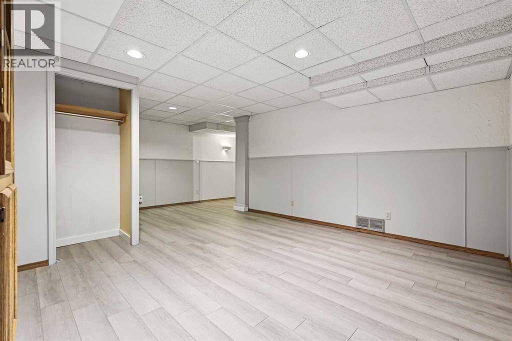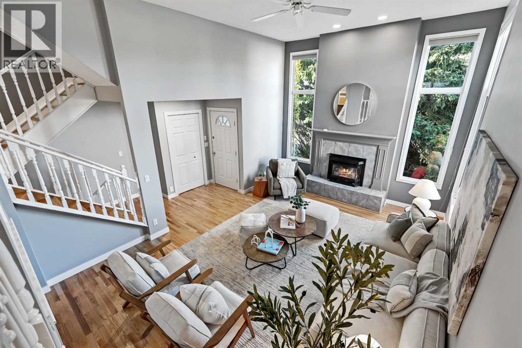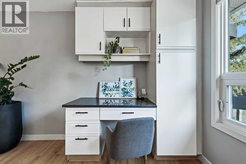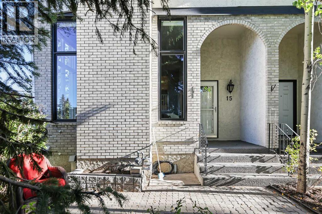 Welcome to this rare end-unit home offering timeless mid-century style and one of the community’s largest floor plans. With over 1,592 sq. ft. above grade plus an additional 590.91 sq. ft. of developed space below, this property combines character, comfort, and functionality. Inside, you’ll find a bright and airy open floor plan with soaring ceilings, a sun-filled south-facing living room, and a modern gas fireplace (convertible back to wood if desired). The updated kitchen is both stylish and practical, while the dining and living spaces flow beautifully for everyday living or entertaining. This home features 2 bedrooms plus a dedicated office, which could easily be converted back to a 3rd bedroom. The spacious owner’s suite fits a king-sized bed with ease and includes a walk-in closet with organizers and a 4-piece ensuite with double vanity and a large glass-enclosed shower with low-threshold entry. Thoughtful updates throughout include vinyl windows, high-efficiency furnace, hardwood, tile, and vinyl plank flooring, garburator, built-in vacuum, and newer built-in oven, dishwasher and washer/dryer. The roof was recently replaced in 2024. Step outside to the interlocking brick patio with a gas line for your BBQ—perfect for summer evenings. The patio can also be fenced for extra privacy or for pets. Pets are welcome (2 dogs/3 cats, with board approval). The complex itself offers resort-style amenities: an indoor pool, fitness centre, racquet court, and more. Enjoy peace of mind with a well run condo association and low monthly condo fees ($637.77) covering snow removal, yard work, and exterior building maintenance. Recently upgraded with Telus fiber optic wiring. The location is unbeatable—walking distance to bus stops and LRT, minutes from shopping, and with quick access to Crowchild, Sarcee, and Shaganappi Trails. The University of Calgary, Foothills and Children’s Hospitals, and downtown are all nearby. Lovingly maintained by the original owner, this home is professionally cleaned and move-in ready. See it... love it! (id:6769)