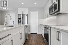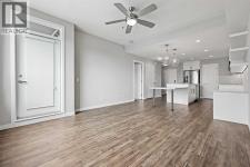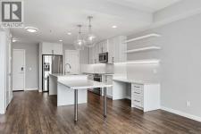 Welcome to this beautifully designed 1-bedroom home—one of StreetSide Developments’ most popular floor plans. Built by a trusted builder with over 27 years of experience, this residence strikes a perfect balance between smart design, innovative finishes, and an unbeatable location. Step inside and discover a bright, open-concept layout that seamlessly connects the kitchen, dining, and living areas—ideal for both entertaining and everyday living. The chef-inspired kitchen showcases a large eating bar, walk-in pantry, and a handy built-in IT station—the perfect nook for working from home or managing your day. You’ll love the contemporary touches, including charcoal quartz countertops, soft-close white cabinetry, upgraded stainless-steel appliances, and durable luxury vinyl plank flooring throughout. The primary bedroom comfortably fits a king-sized bed and offers private access to the 4-piece bathroom, creating a thoughtful blend of privacy and convenience. Extend your living space outdoors to the patio off the great room, a perfect spot to unwind or enjoy your morning coffee. This main-floor unit includes heated underground parking and offers easy access to the outdoors—no waiting for elevators! Ideally located in the sought-after community of West Springs, you’ll be just steps from local shops, cafes, and scenic green-space pathways. With 730 sq. ft. of stylish living, this home delivers the perfect combination of function, comfort, and Westside convenience. (id:6769)