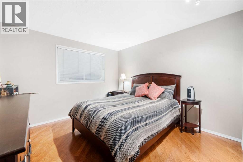 Look no further; this wonderful fully updated home has been meticulously maintained over the years; shows pride of ownership throughout. The home is fully developed with a total of four generous size bedroom with 2.5 baths, two wood burning fireplaces, and best of all Central Air Conditioning for year round comfort. This home sits on a massive hillside lot (0.26 acres) with views of Nose Hill Park and close to many greenspaces and pathways within the neighborhood, a spacious patio and manicured landscaping. This family oriented community has all levels of schools and offers quick and easy access in and out of the community. As you enter this home the foyer is generous in size; unlike the traditional foyer of a bi-level that you are cramped for space. The main floor has wonderful original hardwood throughout, three bedrooms and the primary bedroom has a wonderful three piece ensuite. There is also laundry room on the main floor for your convenience. The living room and dining area is very spacious; ideal for hosting large family gatherings. The kitchen is fully updated with a large center island featuring Caesarstone Quartz counter tops. and is complimented with gorgeous stainless steel appliances that includes a gas stove and two built-in ovens with the abundance of custom made cabinets. As you enter the lower level there is a cozy family room with a wood burning fireplace. The lower level features a fourth bedroom and there is also a two piece bathroom. Two entrances to the oversized double garage which you will absolutely love. Don't miss out on this fabulous opportunity to live in one Calgary's best community; call for your private viewing today. (id:6769)