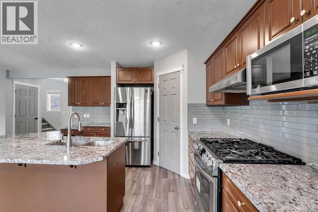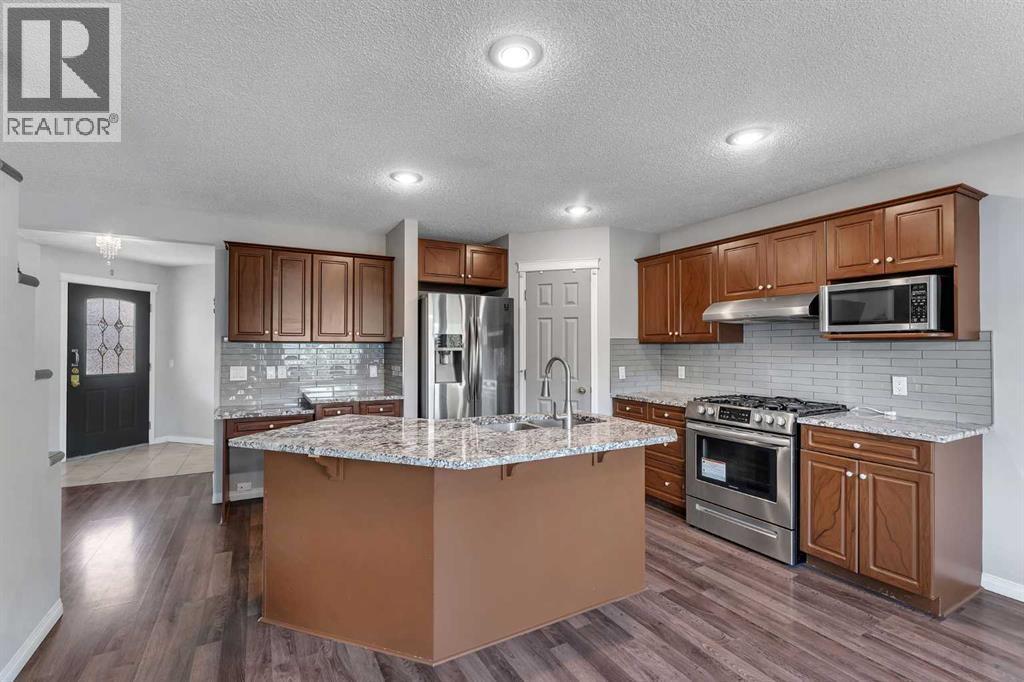 Exceptional family home in Cimarron — 22 Cimarron Crescent. This attractive 2-storey single-family home (approx. 1,850 sq. ft. plus finished basement) features a front double-attached garage, open main floor with spacious living area, well-positioned dining space and a functional kitchen with granite countertops. The second floor offers an oversized bonus room with gas fireplace, a primary bedroom with 4-pc ensuite, two additional generous bedrooms and another 4-pc bath. The private backyard is ideal for gatherings — large wooden deck, mature apple tree, and front + back lane access (excellent for parking, toys or future garage/coach-house options).Located in the family-oriented Cimarron community with extensive pathways, nearby parks and direct access to the scenic Sheep River valley — walk-to-school convenience with several schools in the neighbourhood and quick access to Okotoks amenities and services.Pride of ownership shows throughout — ideal for growing families seeking space, functionality and excellent outdoor access. The roof was changed in this year and comes with a 20 years warranty that can be transferred to the new owner. Book your showing today. (id:6769)