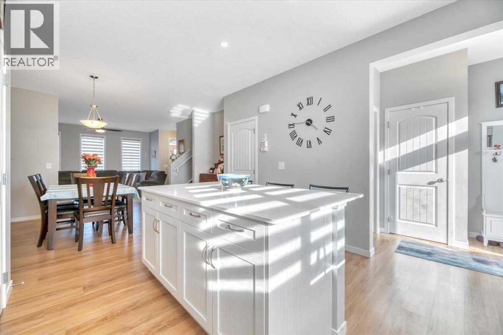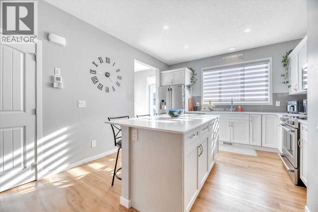 This is a warm and bright home at the doorstep of the Rockies in the sought-after D’arcy Ranch community. The open but sectioned layout allows you to maximize and personalize the space. Situated on a wide lot with breathtaking mountain views from the two bedrooms. The south-facing backyard and large windows provide all-day sun and natural light throughout.You are invited in by the cozy, covered porch and foyer, to the big and open main floor with 9-foot ceilings, living space, dining room, kitchen with a pantry, front and back closets, and tucked-away half-bath and mudroom. Sparkling quartz countertops, modern cabinets, and high-end stainless appliances create a clean and attractive kitchen space with a central oversized island. Upstairs is a large primary bedroom with a double-vanity ensuite and walk-in closet. Separating the primary from well-sized second and third bedrooms is a 4-piece bath and convenient upstairs laundry space. The basement features 9-foot ceilings, bathroom rough-in, egress window, and dedicated utility corner. At the back, you will find a nice sized deck, private yard, and large double parking space accessed from a paved alley. Upgrades include kitchen appliances, window coverings (blackout in bedrooms), luxury vinyl flooring, and fencing.D'arcy Ranch offers more than a better lifestyle. This community is the first to have a safe-route network separating pedestrian travel from major roads. Nearby are multiple highly rated schools, including a private school now taking applications, and a high school with well-recognised French, arts, and trades programs. There is direct access to HWY 2A to beat the rush to Calgary. The new and expansive shopping district is within walking distance. The scenic walking trail around the pond, free seasonal ice rink, multiple playgrounds, free fitness parks, and new pickle-ball courts are sure to keep you busy. Not to mention the 18-hole D'acry Ranch Golf Club out your back door. (id:6769)