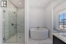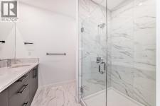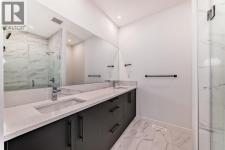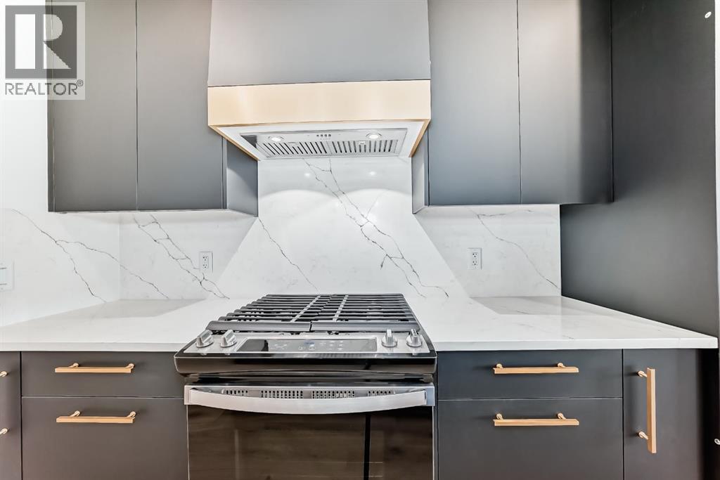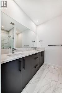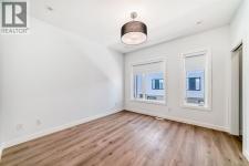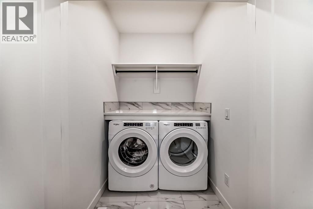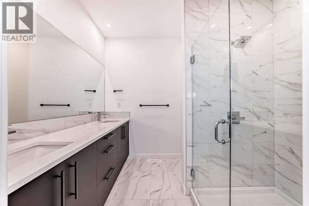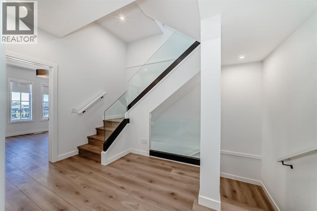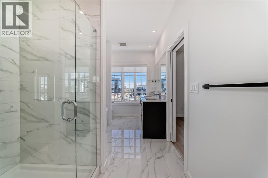 Experience the perfect blend of sophistication, style, and convenience at District Towns in Calgary’s vibrant West District. This beautifully designed 2-bedroom, 2.5-bathroom townhome combines modern architecture with timeless interiors, all enhanced by an expansive rooftop terrace overlooking Radio Park—a rare feature that truly sets this home apart.Thoughtfully crafted across three levels, this residence is ideal for those seeking a refined urban lifestyle. The main floor features a versatile flex room, perfect for a home office, fitness space, or creative studio, along with direct access to the attached double heated garage for ultimate convenience.The main living level is bright and inviting, with soaring ceilings, wide-plank flooring, and an open-concept layout designed for modern living. The chef-inspired kitchen is a showpiece, featuring full-height cabinetry with soft-close doors, a gas range, integrated refrigerator, built-in microwave, and a spacious pantry. A large eat-up quartz island anchors the space—perfect for casual dining, hosting friends, or enjoying a quiet morning coffee.Upstairs, you’ll find two generously sized bedrooms, each with its own private ensuite for maximum comfort and privacy. The primary suite is a true retreat, featuring a walk-in closet and a stunning 5-piece spa ensuite complete with a freestanding soaker tub, tiled shower, dual vanities, and elegant designer finishes. The second bedroom offers its own stylish ensuite, making it ideal for guests or family. A conveniently located upper-floor laundry adds to the home’s thoughtful design.Crowning this residence is the spectacular rooftop terrace, offering sweeping views of Radio Park and the West District skyline. This private outdoor space is perfect for summer barbecues, evening cocktails, or simply unwinding under the stars.Situated steps away from parks, pathways, boutique shops, and premium dining, District Towns deliver a connected, walkable lifestyle in one of Calgary’s most exciting new communities. With TRUMAN’s renowned craftsmanship and attention to detail, this home is more than a place to live—it’s where you can truly Live Better (id:6769)