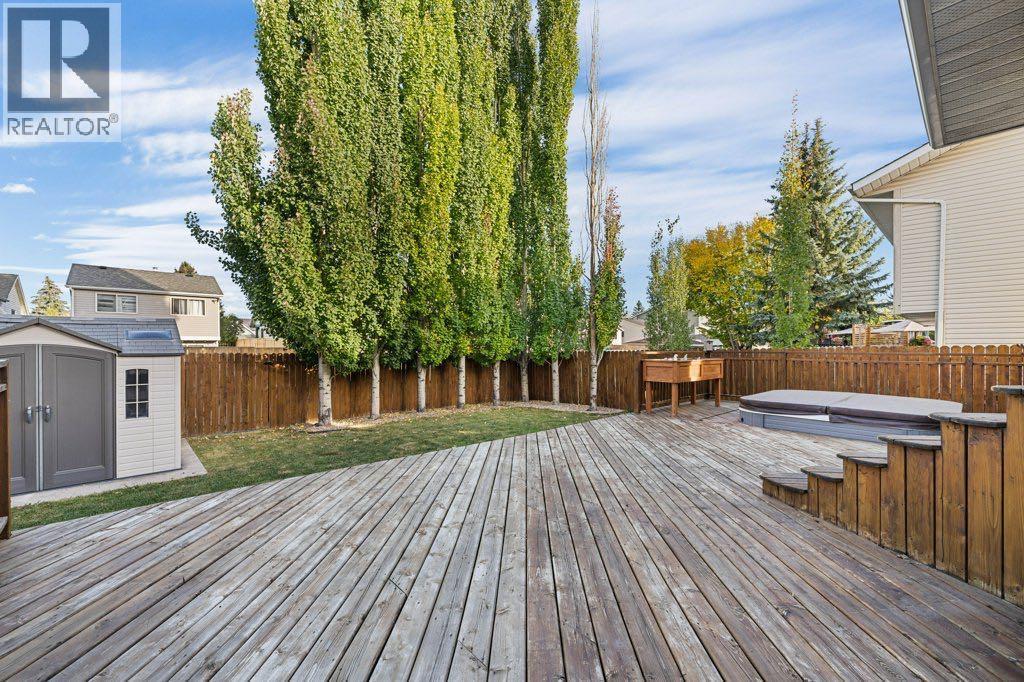 Welcome to this beautifully kept family home in Woodbine! From the moment you walk in, you’re greeted by soaring ceilings in the formal living and dining room that make a great first impression. The kitchen offers plenty of counter space, a large bay window, a brand-new stove (2025), and a bright nook that overlooks the backyard—perfect for keeping an eye on the kids while they play. Just off the kitchen is the family room, filled with natural light and centered around a cozy wood-burning brick fireplace, making it the heart of the home. A half bath and convenient main floor laundry complete this level.Upstairs, the spacious primary suite features vaulted ceilings, a walk-in closet, and a fully updated ensuite with a new soaker tub and tile surround (2025). Two additional bedrooms are generous in size, with great closets and plenty of natural light, and they share a full 4-piece bathroom.The fully finished basement gives you even more living space with a rec room, office area, a large fourth bedroom, and plenty of storage.Outside, the backyard is private and inviting, with mature trees, a huge deck, and ample space for summer BBQs and outdoor living. The double attached garage comes with built-in shelving for organized storage.This home has seen numerous upgrades for peace of mind and modern comfort, including: upgraded light fixtures throughout (2025), fresh paint (2025), new curtains and rods (2025), new hot water tank (2023), upgraded PEX water lines (2023), a new front window (2023) and a newer roof within the last 5 years.All of this, just steps to the park across the street, a 5-minute walk to Fish Creek Park, and close to the Woodbine shopping district. A wonderful opportunity in one of Calgary’s most desirable neighborhoods! (id:6769)