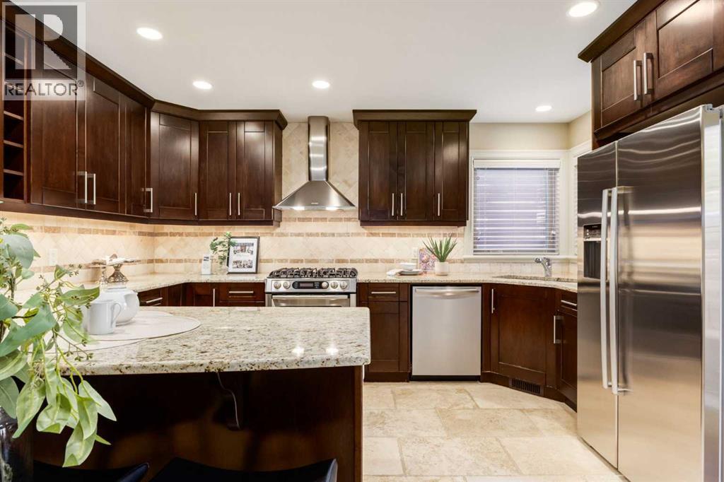 Welcome to your charming and impeccably maintained home nestled in the sought after community of South Calgary. Just a 2-minute stroll away, you'll find yourself amidst the vibrant shops and restaurants of Marda Loop. Within a 10-minute drive lies the bustling heart of Downtown Calgary, while excellent schools and parks are mere steps away. Spanning over 2500 sq.ft. of meticulously developed living space, this home boasts 3 bedrooms on the upper level, 3.5 baths, a fully finished basement, and a double detached garage. Step inside to discover a main floor designed for both functionality and style. The European designed kitchen features chef-quality stainless steel appliances, granite countertops, designer tile backsplash, modern fixtures, and a generous pantry area. The dining area, strategically positioned between the kitchen and living space, comfortably accommodates gatherings of 8 to 10 guests. At the front of the home, the formal living area is bathed in natural light from beautiful windows and features a cozy gas fireplace - ideal for winter evenings. Ascending to the second floor, you'll discover three spacious bedrooms, including a luxurious master retreat complete with a sizable walk-in closet and a spa-inspired ensuite bath. The fully developed basement provides additional living space, featuring a large full bath, walk-in laundry room with storage, built-in bar, media area, and additional bedroom. Completing this exceptional home is a double detached garage, hardwood floors throughout the main floor, central air conditioning, and a private backyard oasis - perfect for outdoor living and entertaining. Welcome home - where luxury, comfort, and convenience await! (id:6769)