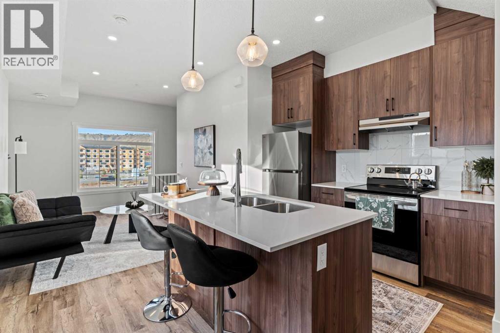 Discover the perfect balance of modern elegance and relaxed living in this stunning home, thoughtfully designed for comfort, connection, and outdoor enjoyment. Located in one of Cochrane’s most desirable new communities, this property offers a rare chance with quick access to the Rocky Mountains and all the amenities of the growing Greystone development. Step inside and you’ll be welcomed by a bright, open-concept layout featuring 9-foot ceilings and luxury wide-plank flooring throughout. The gourmet kitchen is beautifully equipped with quartz countertops, soft-close cabinetry, premium stainless steel appliances, and a spacious island perfect for casual dining or entertaining. The home features three bedrooms and two full bathrooms, each designed with modern fixtures, stone tile floors, and matching quartz vanities. Your convenience continues with a single attached garage and an additional parking pad, providing plenty of room for family and guests. Enjoy peaceful mornings on your private deck overlooking the water, or take advantage of the brand-new pickleball courts just across the street. Meandering garden pathways, green spaces, and local parks make it easy to unwind outdoors and stay active year-round. Perfectly situated within walking distance to Ocgrow’s Greystone Place Retail Centre, you’ll have access to restaurants, cafés, shops, and the upcoming flagship Co-op grocery store — everything you need right at your doorstep. Plus, with Spray Lakes Sports Centre minutes away and the Rockies within reach, adventure and leisure are always nearby. Be part of Cochrane’s fastest-growing community and experience a lifestyle where modern design meets natural beauty — live, work, and play - welcome home to Greystone. (id:6769)