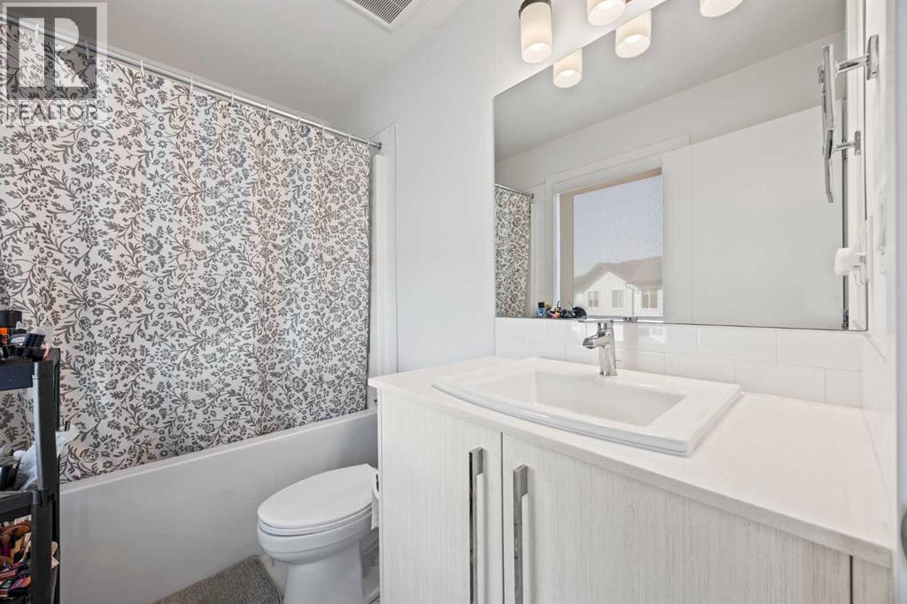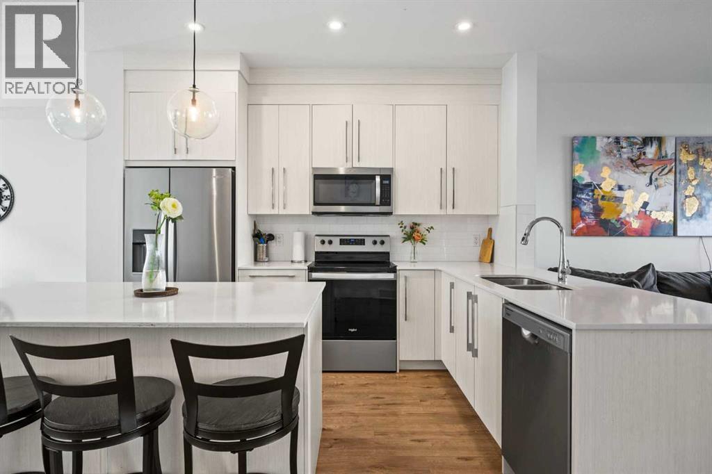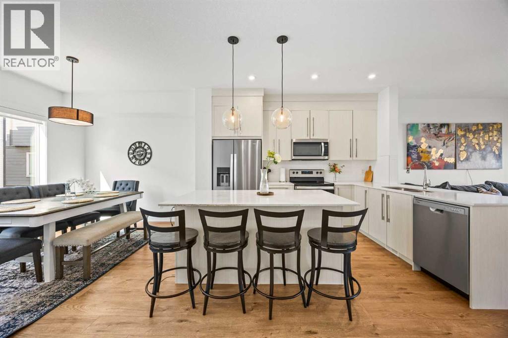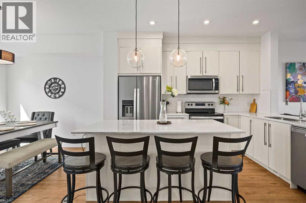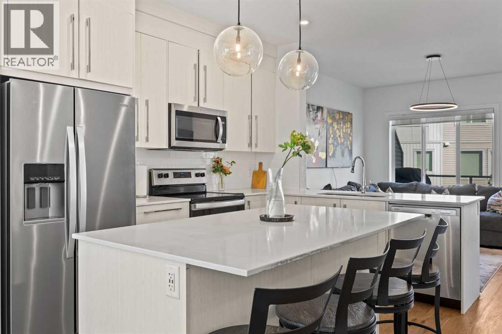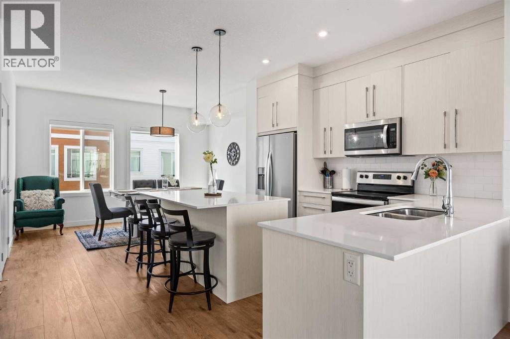 Discover a lifestyle that blends comfort, flexibility, and connection in this beautifully crafted 4-bedroom, 2.5-bath townhome, perfectly situated in the vibrant yet peaceful community of Pine Creek. Surrounded by nature and modern amenities, this home strikes the perfect balance between serenity and convenience.The main floor welcomes you with a bright, versatile bedroom that can easily transform into a private office, fitness studio, or inviting guest suite. Imagine starting your mornings here with a quiet cup of coffee and a moment of stillness before the day begins.Upstairs, the open-concept kitchen, living, and dining spaces are bathed in natural light, creating a warm and welcoming setting for both everyday living and entertaining. Step outside to the expansive glass-railed balcony and enjoy views of the landscaped central courtyard, a private retreat where you can unwind morning or night.The top level offers three more spacious bedrooms, including a serene primary suite complete with a private ensuite. Designed with balance in mind, this home provides open gathering spaces as well as restful retreats, allowing you to recharge and reconnect with ease.An oversized double attached garage adds even more value, offering room not only for vehicles but also for storage, hobbies, or a workshop. Whether it is seasonal items or sheltering your car during winter, this extra space makes life more convenient.Close to schools, shopping, parks, and playgrounds, and with easy access to the Somerset C-Train Station, this home delivers both comfort and connectivity. More than just a residence, this Pine Creek townhome is a place where thoughtful design meets everyday ease, giving you a lifestyle that feels both elevated and effortless. (id:6769)