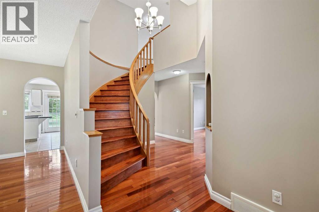 Nestled on a quiet street with a park in the backyard, this property has over 3,400 sq/ft of developed living space, including 1,334 sq/ft on the main level. This incredible home is designed for entertaining and comfortable family living. The main level features tile and hardwood flooring throughout the front living room and formal dining area. The family room has vaulted ceilings, a fireplace, and built-in bookshelves. The kitchen has white cabinetry, granite counters, an island, and stainless steel appliances. A den on the main floor allows for some flexibility. Ascend the graceful hardwood spiral staircase to the upper floor, where three generous bedrooms, all with hardwood flooring, await, including a master suite. The master ensuite features a jetted tub, a separate shower, and a walk-in closet. The finished basement has a rec/games room, a second fireplace, a wet bar, and a fourth bedroom. Recent updates include the replacement of all Poly B piping in 2025, many new windows, and the installation of a high-efficiency furnace in 2019. The backyard is ideal for children, with a park directly behind the property. This home offers an incredible lifestyle in a desirable location. Schedule a showing today. (id:6769)