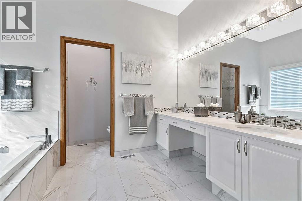 *** OPEN HOUSE SAT OCT. 11th from 1-3pm*** This exceptional executive bungalow offers over 3,100 square feet of refined living space in the prestigious Canyon Creek Estates within the highly sought-after Canyon Meadows community. Perfectly positioned near Fish Creek Park and Canyon Meadows Golf Club, this remarkable home sits on an expansive, tranquil lot that provides both privacy and space for outdoor enjoyment. The thoughtfully designed layout features a welcoming foyer that flows seamlessly into a formal dining area with soaring 10-foot ceilings and abundant natural light. The open floor plan showcases a three-way gas fireplace that elegantly separates the living spaces from the gourmet kitchen. The culinary centerpiece boasts a substantial island, extensive cabinetry, custom built-ins, granite countertops, and a charming breakfast nook for casual dining. The primary bedroom serves as a private retreat with a generous walk-in closet and spa-inspired ensuite featuring a glass-enclosed shower and relaxing soaker tub. A second bedroom includes its own ensuite and walk-in closet, while a convenient two-piece bathroom completes the main level. The well-appointed laundry room offers ample storage and workspace with built-in cabinetry and utility sink. The fully developed walk-up basement expands the living space with two additional bedrooms, a spacious family room, second gas fireplace, and four-piece bathroom. A versatile flex room and impressive nine-foot ceilings enhance the lower level's functionality and appeal. Outdoor living is maximized with a large covered deck featuring maintenance-free vinyl materials, perfect for year-round entertaining. The massive yard provides endless opportunities for family gatherings and outdoor recreation in this exceptional property. Recent upgrades include the exterior stucco & shingles, and all four bathrooms. This home's exclusive location puts you within walking distance to schools of all levels, fitness facilities, tennis cour ts, LRT, public transportation, all your amenities, and the natural beauty of Fish Creek Park and the prestigious Canyon Meadows Golf & Country Club! (id:6769)