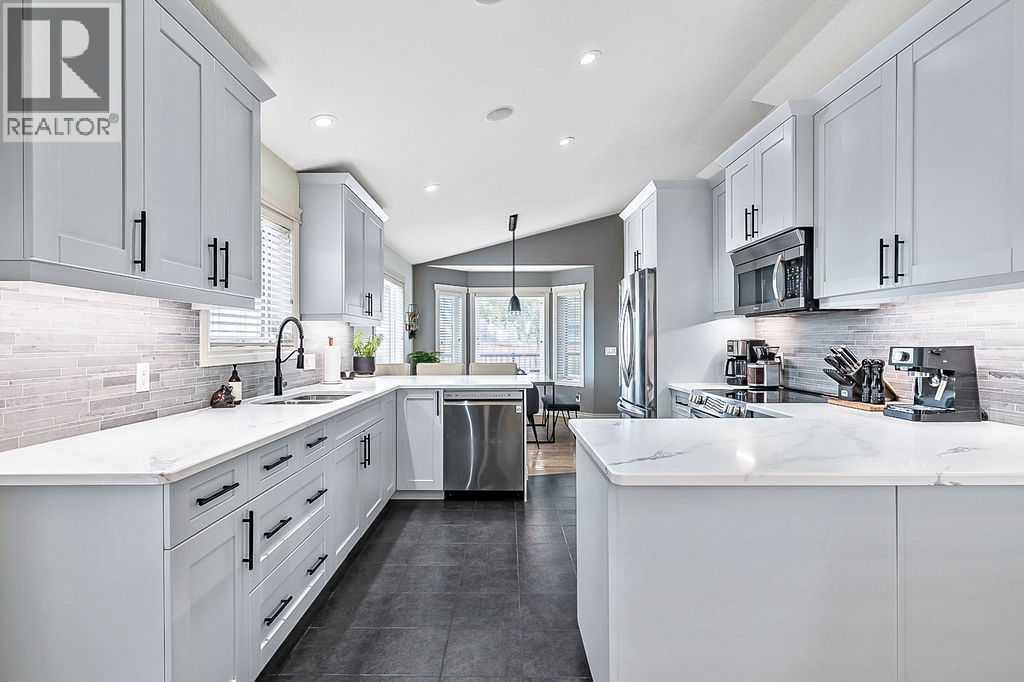 Luxury Living with Exceptional Versatility – A Rare OpportunityWelcome to this beautifully appointed bungalow, where style, comfort, and functionality come together in perfect harmony. Designed to impress, this spacious home offers elegant living on the main level and a thoughtfully designed illegal suite in the walk-out basement — ideal for multigenerational living, guests, or supplementary income. Main Floor Elegance: vaulted ceilings and a stunning gas fireplace anchor the sophisticated family room. Open-concept kitchen and dining area with seamless access to a large, elevated deck complete with a gas BBQ hookup. The chef’s kitchen is a standout feature, complete with professionally painted cabinetry, newer upgraded stainless steel appliances, rich quartz countertops, under-cabinet lighting, a large peninsula with seating, and direct access to the expansive deck with a gas BBQ hookup perfect for indoor/outdoor living. Three generously sized bedrooms offering comfort and privacy, Main floor laundry for added convenience, Integrated surround sound system throughout , Central air conditioning for year-round comfort Outdoor Excellence: Impressive 28' x 26' heated double garage with hot water in-floor heating, 220V power, built-in shelving, and cabinetry. A dream for hobbyists or car enthusiasts. Additional parking beside the garage, perfect for an RV, boat, or multiple vehicles Private yard with direct access from the deck, ideal for entertaining or relaxing in peace. Lumenox custom exterior lighting enhances both curb appeal and security. Walk-Out Lower Level: Large family room that can serve as part of the main home or be closed off for suite privacy. Beautifully finished illegal one-bedroom suite with private access from both inside and outside. Full kitchen, open-concept living and dining area, spacious bedroom, modern bathroom, and private laundry. Enjoy the comfort of hot water in-floor heating throughout the basement. Noteworthy Upgrades: New furnace and HRV unit (2023). New hot water tank (2025). Water softener system. This is more than a home — it's a lifestyle. With premium finishes, extensive upgrades, and a flexible layout tailored for modern families or those seeking a luxurious investment opportunity, this property truly stands out. (id:6769)