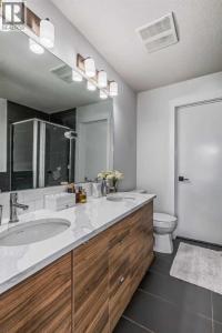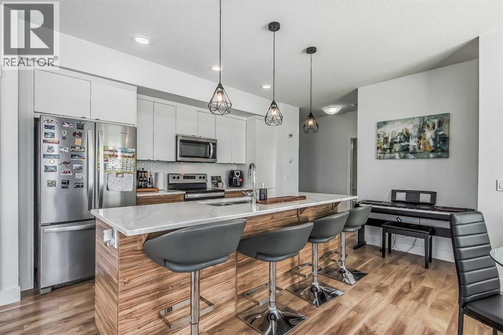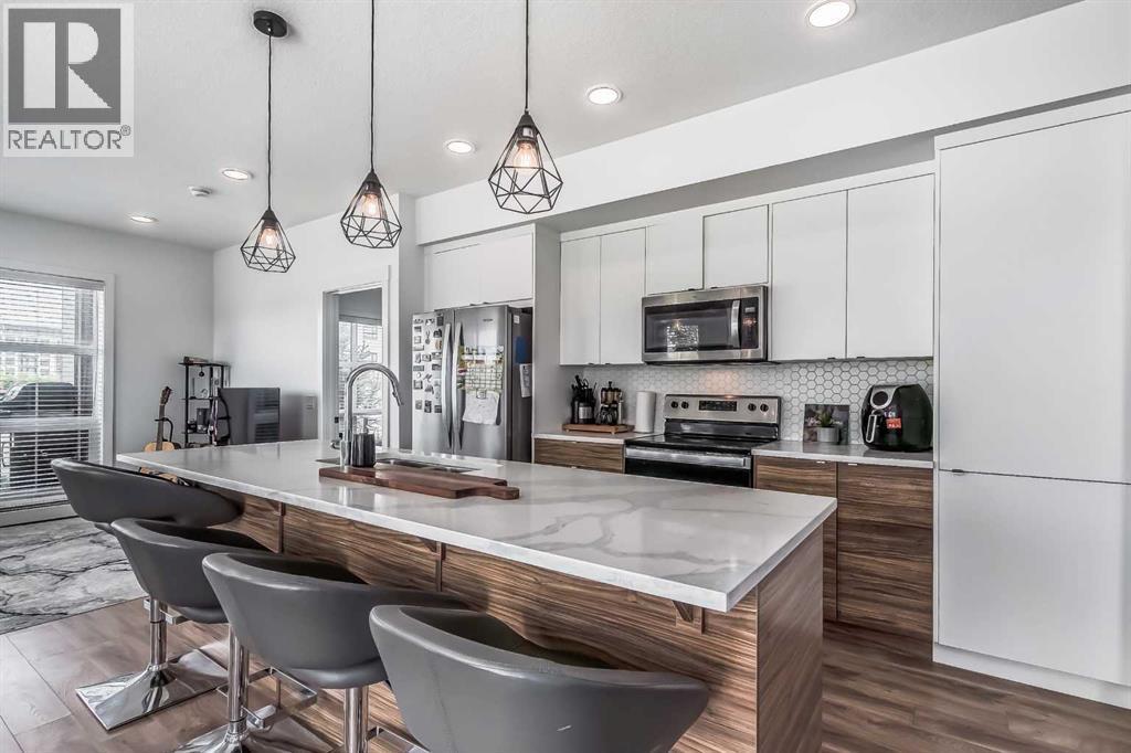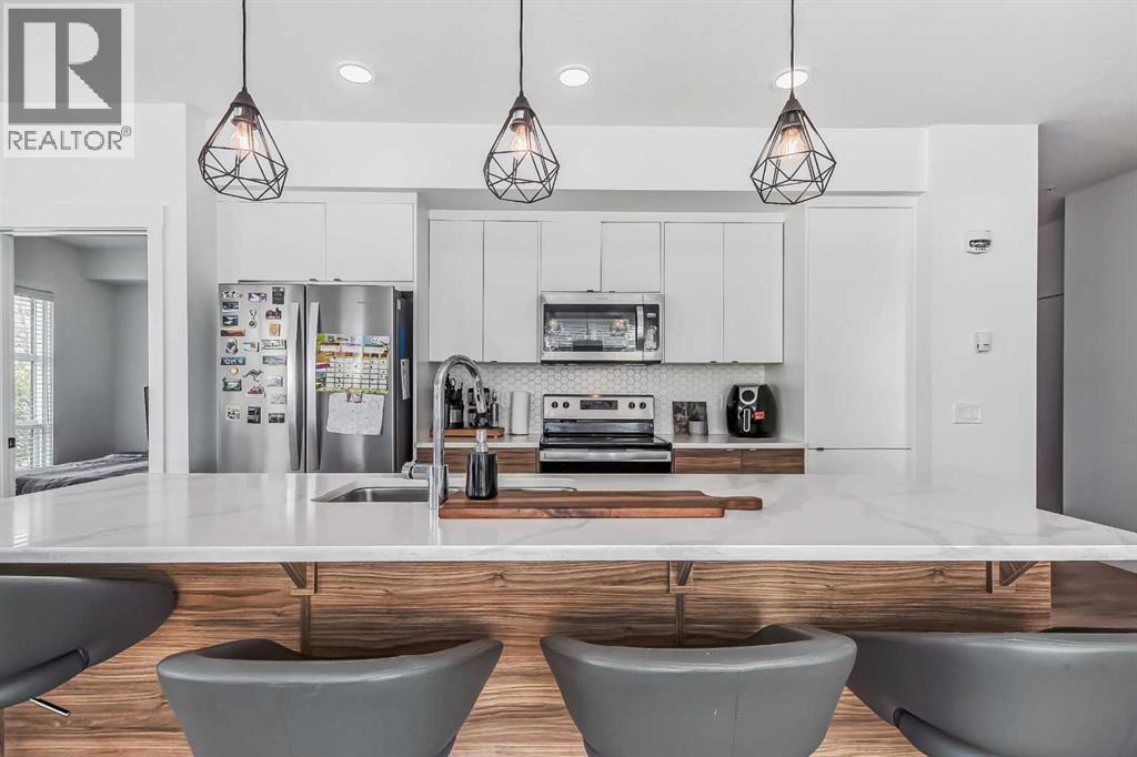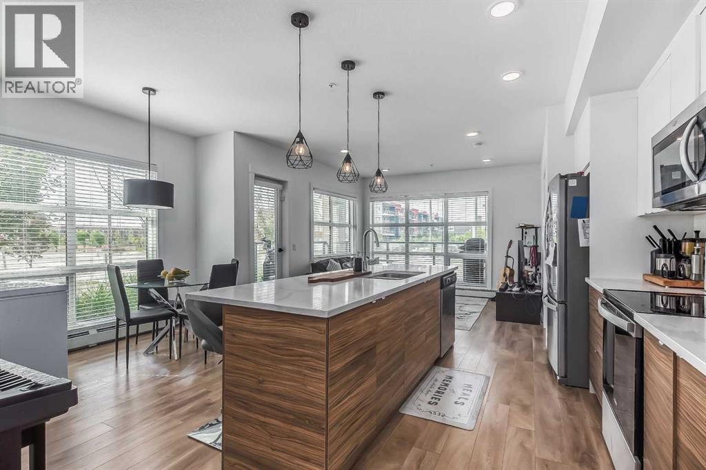 Welcome to this stunning end-unit ground floor apartment featuring 9-foot ceilings in the vibrant community of Seton. Perfectly situated in a premium location, this home offers breathtaking mountain views to the West and peaceful park views to the North.Inside, you’ll find wall-to-wall windows that fill the space with natural light, creating an inviting and airy atmosphere. The open and functional floor plan showcases a modern kitchen with a large peninsula breakfast bar island, quartz countertops, stainless steel appliances, and full-height cabinetry. The spacious living room and generous dining area are ideal for entertaining friends and family. The primary suite features a large window, a walk-in closet, and a luxurious ensuite complete with dual vanities, a soaker tub, and a stand-up shower with full-height tile. A well-sized second bedroom is complemented by a convenient 4-piece cheater ensuite, perfect for guests or family.This condo also comes with two titled underground secured parking stalls and a separate titled storage unit, ensuring all your parking and storage needs are met.Seton is one of Calgary’s fastest-growing communities, offering endless amenities including a VIP Cineplex theatre, public library, South Health Campus, the world’s largest YMCA, shopping, dining, schools, and easy access to Stoney Trail and Deerfoot Trail. Don’t miss out on this rare opportunity book your private showing today! (id:6769)