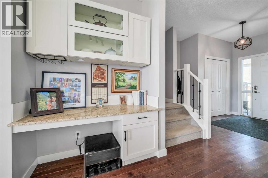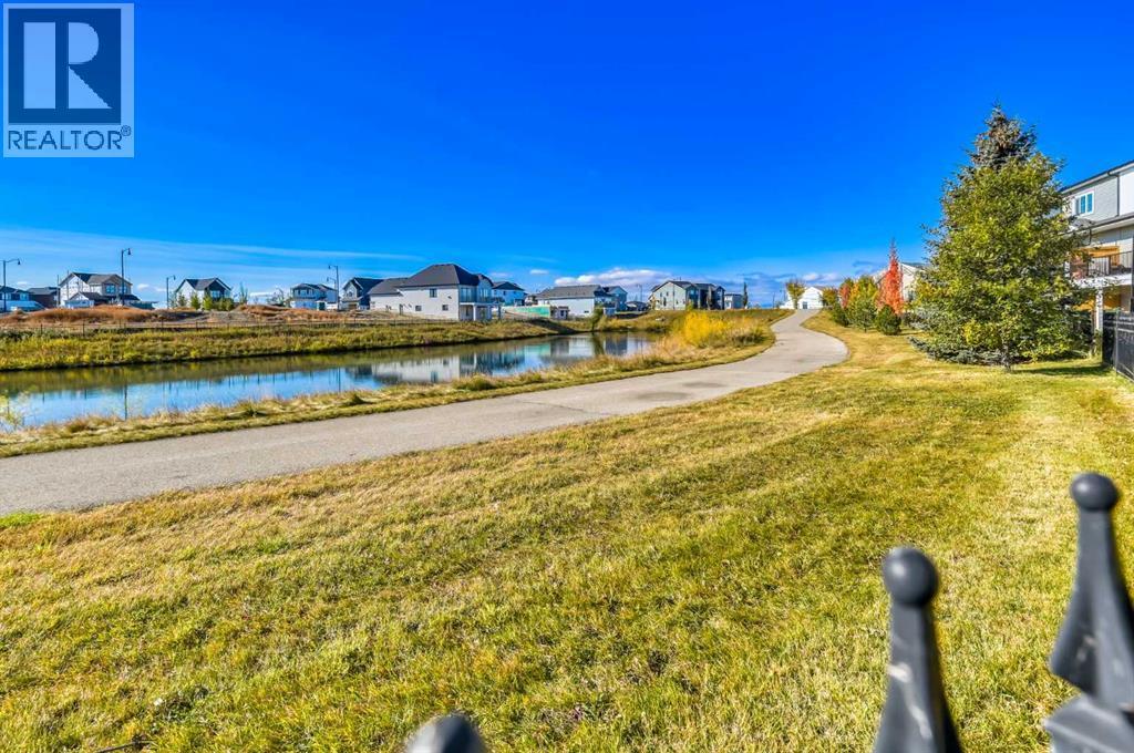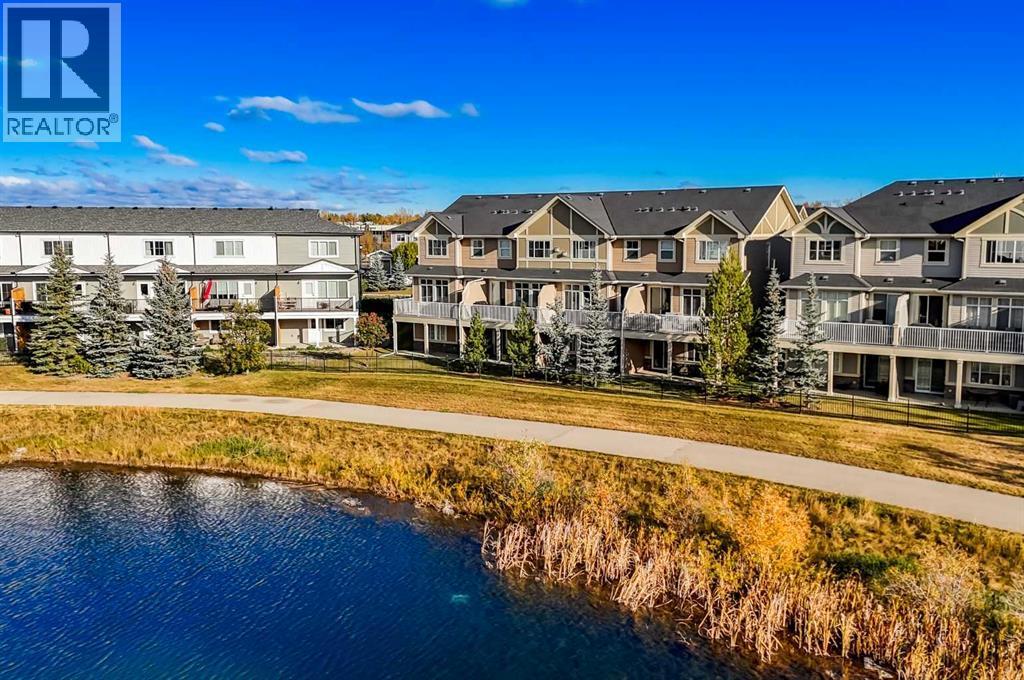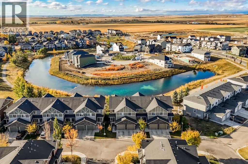 Live on the water in sought after Monteith! Incredible value in this fully developed walkout property overlooking the water with views of the Rocky Mountains. Over 2200 sq ft of developed living space! Immaculately maintained and updated throughout with tasteful interior renovations & significant mechanical system updates, this property is 100% turnkey. Modern open plan, with large entryway leading to a wide-open kitchen & dining area. Timeless shaker style cabinetry, large corner pantry, & granite countertops including central island. Built-in granite clad message center opposite the kitchen with upper and lower cabinetry makes an excellent bar or coffee station. Stained oak hardwood flooring throughout the main level. Sunny, South facing balcony runs the entire width of the property and is bordered by privacy walls on both sides & makes full advantage of the water & mountain views. 3 very generous bedrooms upstairs including oversized primary bedroom with full ensuite bath and walk-in closet. In this sprawling townhome all rooms are larger than standard and the upper level also offers a central bonus/flex room. Fully developed walk-out basement with a 4th full bathroom with separate deep soaker tub & custom tilework. Media/theatre room offers many uses and walks out directly to a covered patio area with access to the gorgeous, lush community walkways which wind through Monteith and along the water. Many upgrades & extras including central A/C, water softener, new washer & dryer, new stove, new dishwasher, & smart controls for the high efficiency furnace & A/C. Single attached garage, fully insulated and drywalled with 10' high ceiling. Located just steps from High River Co-Op, Rec Center, community walkways, parks, courts, & all amenities. A premium location within High River nestled in a nature-focused development with easy access to all the community has to offer. The total package offering superb value in Monteith of High River! (id:6769)