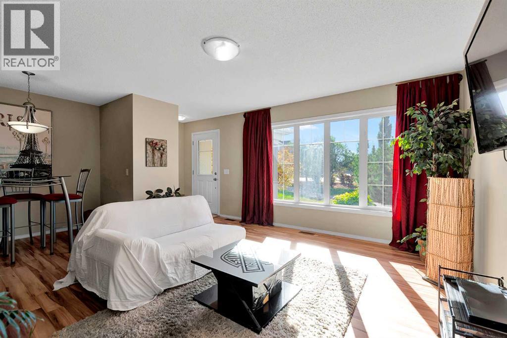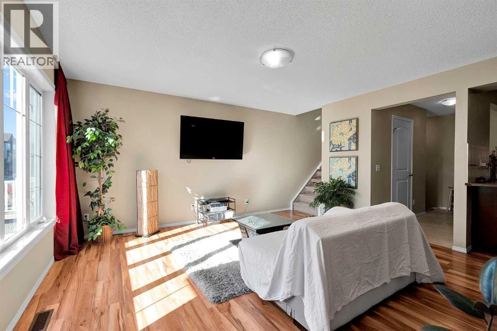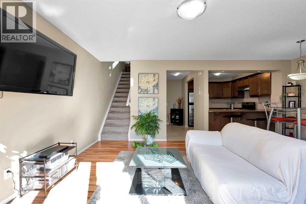 Spacious Townhome Across from the Park – Double Garage & Bonus Room with Balcony. Welcome to this bright and inviting 3-bedroom, 3-bathroom townhouse ideally situated across from a beautiful park. Featuring a double attached garage and thoughtful layout, this home offers the perfect balance of comfort and convenience. The main floor features an open-concept living space with laminate flooring, a stylish kitchen equipped with a breakfast bar, and ample storage throughout. Upstairs, a versatile bonus room opens to a large balcony with a gas line for your BBQ—perfect for entertaining or enjoying your morning coffee. All three bedrooms are generously sized, and the high-efficiency furnace ensures year-round comfort. The basement half bath is already roughed in, offering the potential to create a full bathroom if desired. Enjoy relaxing on your south-facing front patio, or take advantage of the unbeatable location steps from schools, parks, walking paths, transit, and shopping, with easy access to Calgary for commuters. Don’t miss out, schedule your private showing today. (id:6769)
