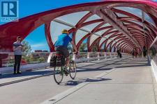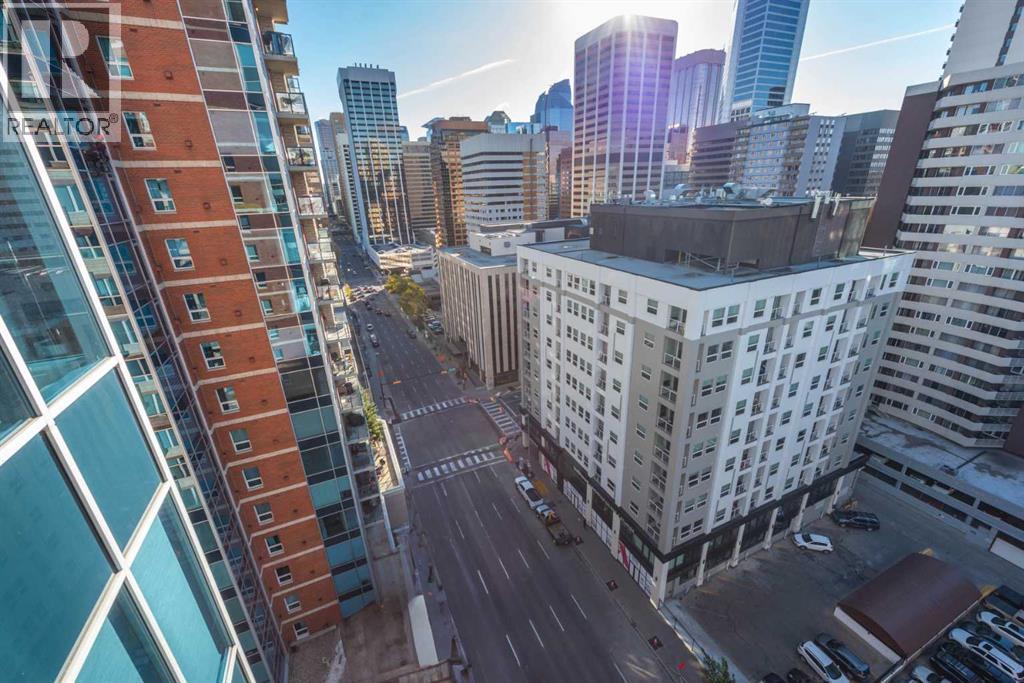 Sophisticated urban condo living is yours in this freshly painted, bright & stylish, very desirable, 2 bdrm + den/2 full bath, south east CORNER, CITY VIEW suite, wrapped in windows, at Five West – one of Calgary’s PREMIER executive condo buildings. You’ll be impressed with the hardwood floors throughout the main living areas and the efficient floor plan as soon as you walk in – spacious front entry with den space, great sized kitchen with luxurious granite counters, sleek stainless steel appliances and lots of cabinets, dining area with glass door to the south facing balcony with gas BBQ line, cozy corner gas fireplace in the living room all surrounded in windows! Primary bedroom offers lots of space to easily accommodate a king-sized bedroom, walk in closet and 4 pc main ensuite. Second bedroom, set apart from the primary, offers a cheater ensuite bath - so convenient for a room mate or guests. The abundance of natural light throughout the suite is truly memorable! There is of course central air conditioning, an in-suite laundry room with extra storage area, extra storage locker and one titled parking stall is included. Five West building amenities incl. concierge service (so nice!), owners lounge, car wash bay & indoor visitor parking for when friends stop by for a drink or dinner. The location is superb, an easy walk to your DT work, restaurants & coffee shops, 2 blocks from the LRT free downtown zone. The river pathway is a block away for a walk, jog or bike ride at the end of the day or to enjoy your weekend, and just across the bridge is the vibrancy of all Kensington has to offer. This suite is move in ready - Call to view today! (id:6769)