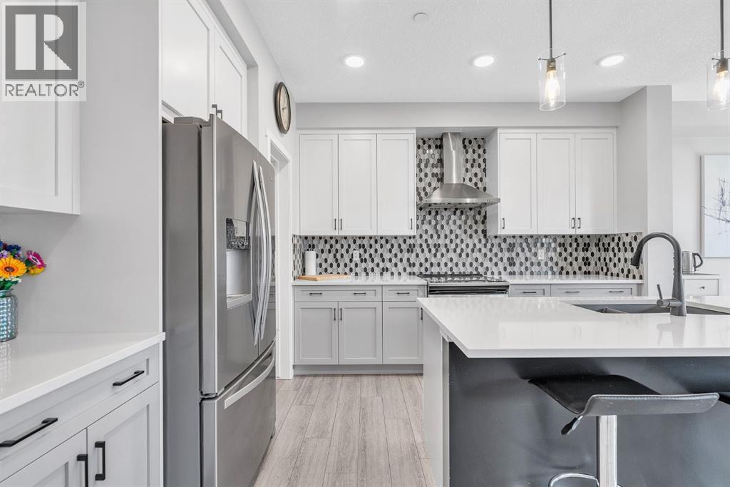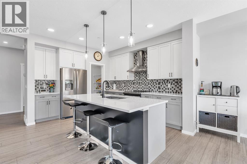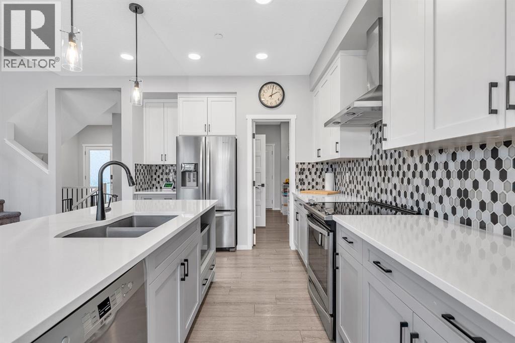 Located in the vibrant, growing community of Livingston, just steps from Livingston Park and within walking distance of numerous amenities is this immaculately kept 4 bedroom, 3.5 bathroom, modern 2 storey home with bright, open floor plan, double attached garage and developed basement!! Entering the home, you're greeted into a spacious foyer. The functional main floor layout offers a discrete powder room set apart from the main living areas, a large mud room off the garage with a walk-through pantry that leads into the kitchen, and an open-concept living, kitchen and dining area overlooking the back yard. The kitchen is the heart of the home, featuring a large island with room for seating, stainless steel appliances, stone counters and ample storage with soft-close cabinets and drawers. The living room is anchored by a cozy gas fireplace and offers large windows for an abundance of natural light. Upstairs, you'll find a large primary bedroom with spacious ensuite and walk-in closet. The ensuite features dual sinks, a soaker tub and separate shower, and a private water closet. Down the hall is a versatile den/office space, two additional bedrooms, a full bathroom and convenient upper laundry room. You'll also appreciate the open bonus room on this floor. The basement is developed with a family room and large bedroom with walk-in closet and private ensuite. Enjoy the rear deck, complete with BBQ gas line, and the fully-fenced yard for the kids and pets! With central air conditioning to keep you comfortable on hot summer days and a complete fire suppression system for added peace of mind, this is the perfect family home. (id:6769)