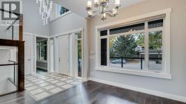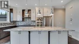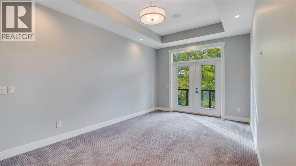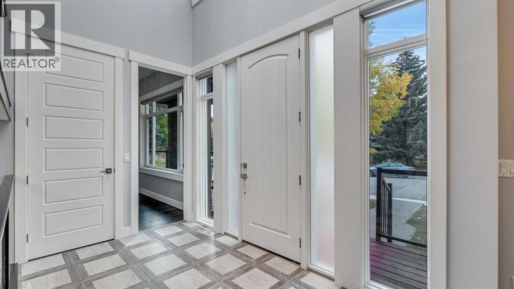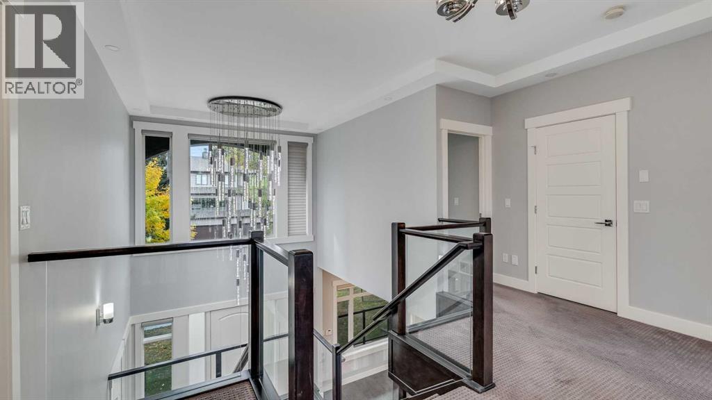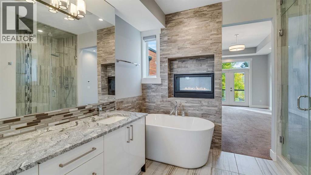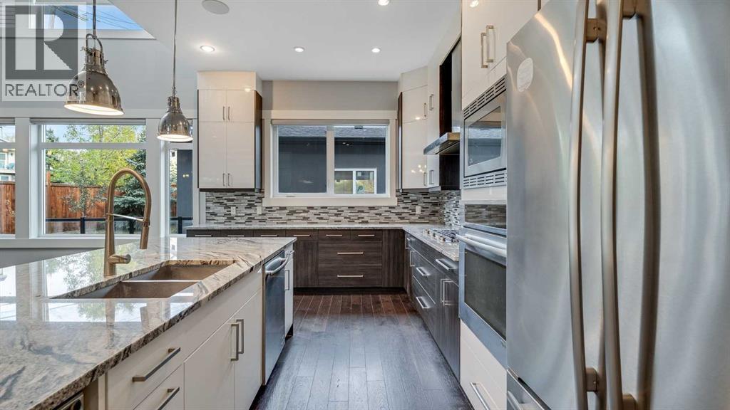 **Masterpiece of Modern Elegance in ParkdaleNestled just steps from the serene Bow River pathways and the lush beauty of Elbow Park, this exquisite residence offers the perfect balance of nature, luxury, and urban convenience. Ideally situated near the Alberta Children’s Hospital, Foothills Hospital, and Market Mall, every essential—whether shopping, recreation, or emergency care—is mere minutes away. Behind the property, tranquil walking and cycling trails invite you to unwind and reconnect with the outdoors. Set on a generous 45-foot lot in Calgary’s highly sought-after inner-city enclave of Parkdale, this stunning stucco home is a showcase of architectural sophistication and exceptional craftsmanship. Spanning over 4,000 sq.ft. of opulent living space, including 2,573sq.ft. above grade, it features five spacious bedrooms and four-and-a-half luxurious baths. From the moment you enter, the home’s grandeur is undeniable—beginning with a soaring 19-foot foyer, beautifully tiled floors, and a dramatic open-riser staircase that exudes modern artistry. Expansive windows flood the open-concept interior with natural light, highlighting fine finishes and elegant design details throughout. The main living area is anchored by a sleek gas fireplace, offering both warmth and sophistication—a perfect setting for relaxed evenings or formal gatherings. The chef-inspired kitchen is a true statement of luxury, boasting a large granite island with breakfast bar, two-tone custom cabinetry, a built-in wine cooler, and an elite JennAir appliance package. French doors lead seamlessly to an oversized patio, ideal for al fresco dining and entertaining, complete with a rough-in BBQ gas line and integrated sound system. A spacious main-floor office or flex room, along with a refined powder room, completes this impressive level.The upper floor unveils a private master retreat that redefines comfort and elegance. Featuring a west-facing balcony, a romantic two-sided fireplace, and a spa-wor thy ensuite with a freestanding soaker tub, glass-enclosed shower, and bespoke walk-in closet, this suite is designed for pure relaxation. Two additional bedrooms—one with its own ensuite—plus a stylish full bath provide exceptional accommodation for family or guests. The fully developed lower level extends the home’s luxurious living with a vast recreation and media area, two additional bedrooms, and a full bath. A remarkable highlight is the legal basement suite with in-floor heating and a private entrance, offering both comfort and versatility—ideal for extended family, guests, or potential rental income. Additional features include a central vacuum system, built-in audio throughout all three levels, and advanced exterior security cameras for peace of mind. Every element of this residence has been thoughtfully curated to offer a lifestyle of refined elegance, comfort, and modern sophistication—all within one of Calgary’s most desirable riverside communities. (id:6769)