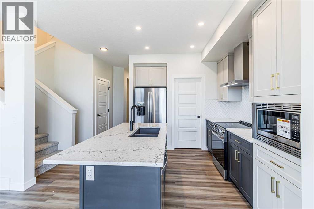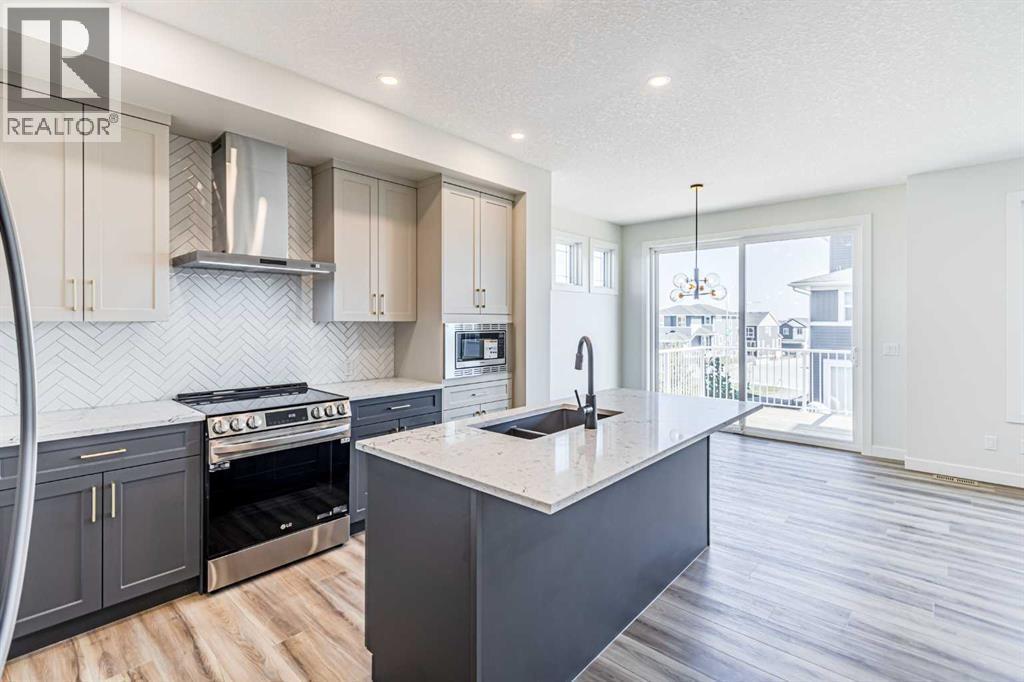 Welcome to 34 Amblefield Heights NW, a stunning 1,891 sq. Ft. single detached home in the vibrant community of Ambleton. This is a newly built house property, has never been occupied and offers modern style, thoughtful design, and an unbeatable location beside a park and basketball court perfect for families and outdoor living.The main floor features a bright open concept layout with a spacious living room including an electric fireplace, ideal for relaxing or entertaining. The modern upgraded kitchen includes stainless steel appliances, a large island, quartz counter tops, and plenty of cabinets, while a patio door off the dinning room leads to your private balcony great for BBQs and summer evenings. A main floor office/den provides a quiet space for work or study, and a front double attached garage offers convenience and storage.Upstairs, you’ll find a large loft/bonus room, three generous bedrooms, and laundry. The primary suite boasts a walk-in closet and a walk-in shower. Both secondary bedrooms also feature walk-in closets, providing ample space for the whole family.The walk-out basement offers incredible potential whether you envision a recreation area, home gym, or future suite development (subject to approvals). Framing and insulation done for the basement walls (see picture). Enjoy direct access to your backyard, with open green space and the park just steps away.This home combines function, comfort, and modern finishes in a quiet, family-friendly setting — all just minutes from shopping, schools, and major routes. 5 mind drive to FreshCo Evanston, Walmart Supercentre Sage Hill Gate. (id:6769)