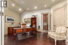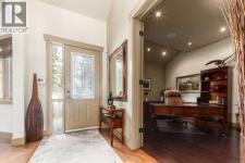 Tucked within the exclusive gated enclave of Sussex Green, this remarkable walk-out bungalow redefines villa living. Behind the gates of this 24-home community lies an extraordinary residence offering over 5,000 square, embracing both luxury and tranquility in equal measure.Step through the grand entrance and feel the sense of scale—vaulted ceilings, sweeping spaces, and exquisite finishes. A sunlit front sitting room, warmed by a cozy gas fireplace and gentle morning light, offers the perfect spot to start the day or unwind with a favourite book. Just across the hall, a beautifully appointed home office provides a calm, thoughtful design with inviting finishes. A sense of quiet elegance tie these rooms together, creating a welcoming balance of comfort, warmth, & refined living. At the heart of this remarkable home lies an exquisite oversized kitchen that perfectly marries sophistication and practicality. Framed by abundant custom cabinetry, this culinary space is equipped with top-tier professional appliances that elevate every cooking experience. A striking central island serves as the perfect gathering place for guests, while elegant finishes and impeccable design details create an atmosphere of refined luxury. Truly a chef’s masterpiece and an entertainer’s dream, this kitchen defines high-end living at its finest. From here, walls of windows frame the lush ravine beyond, creating a seamless connection between indoor luxury & natural beauty. The open dining and living areas set the stage for effortless entertaining, with a dramatic floor-to-ceiling fireplace and access to a private deck where tranquil ravine views unfold…a living canvas that shifts with the seasons, offering privacy, peace, and the hum of nature just beyond the glass. The primary suite, tucked thoughtfully on the main level, is an indulgent escape. Here, mornings begin with light filtering through the trees, and evenings end in the deep calm of a spa-inspired ensuite—complete with a soaker tub, oversized shower, and the promise of relaxation.Ascend the elegant curved staircase to discover two beautifully appointed bedrooms, each with unique architectural charm inviting rest and reflection. The shared, spa-inspired bathroom adds a touch of everyday luxury, with dual sinks & sleek finishes perfect for every family. In the walk-out level, the home reveals a space designed for pure indulgence and effortless entertaining. At its heart stands a custom-built bar, a masterpiece of rich woodwork and impeccable detail, perfect for hosting elegant gatherings or relaxed evenings. Multiple televisions line the entertainment area, creating the ideal backdrop for game nights, while the warm glow of an elegant fireplace adds a touch of charm that encourages lingering conversation. Beyond the entertainment zone, there’s ample space to accommodate a fitness studio or hobby room. This is more than a residence—it’s a lifestyle defined by grace, craftsmanship, and the quiet luxury of living beautifully. (id:6769)