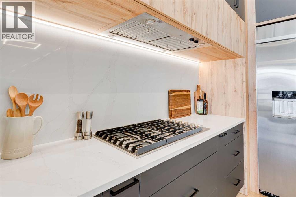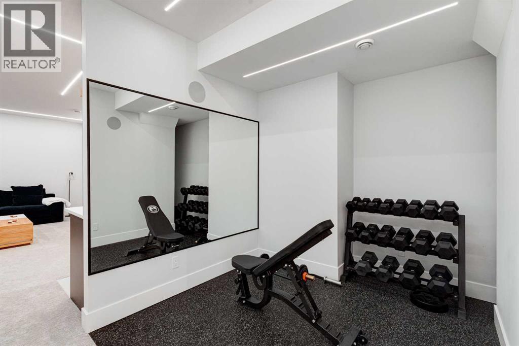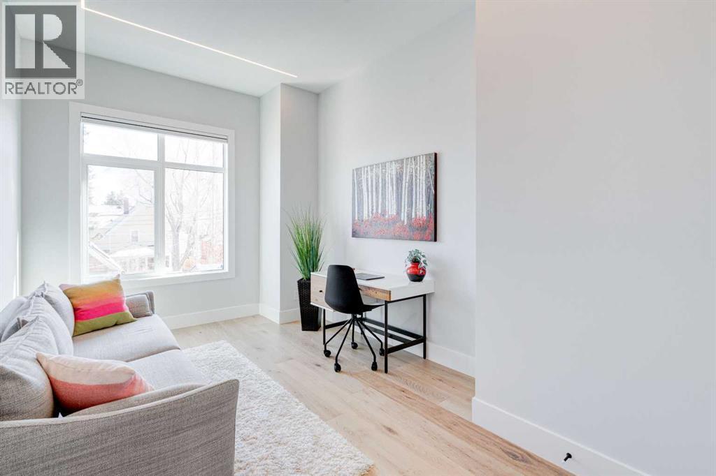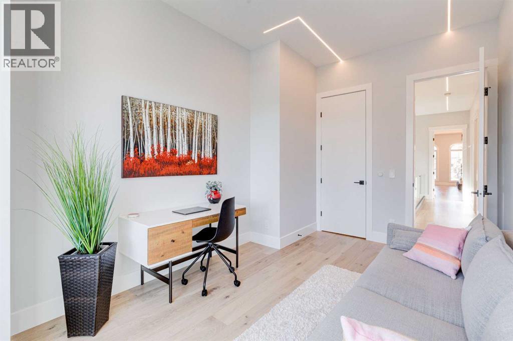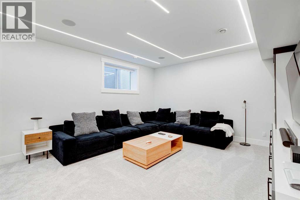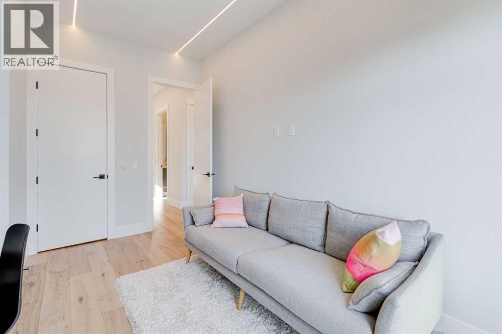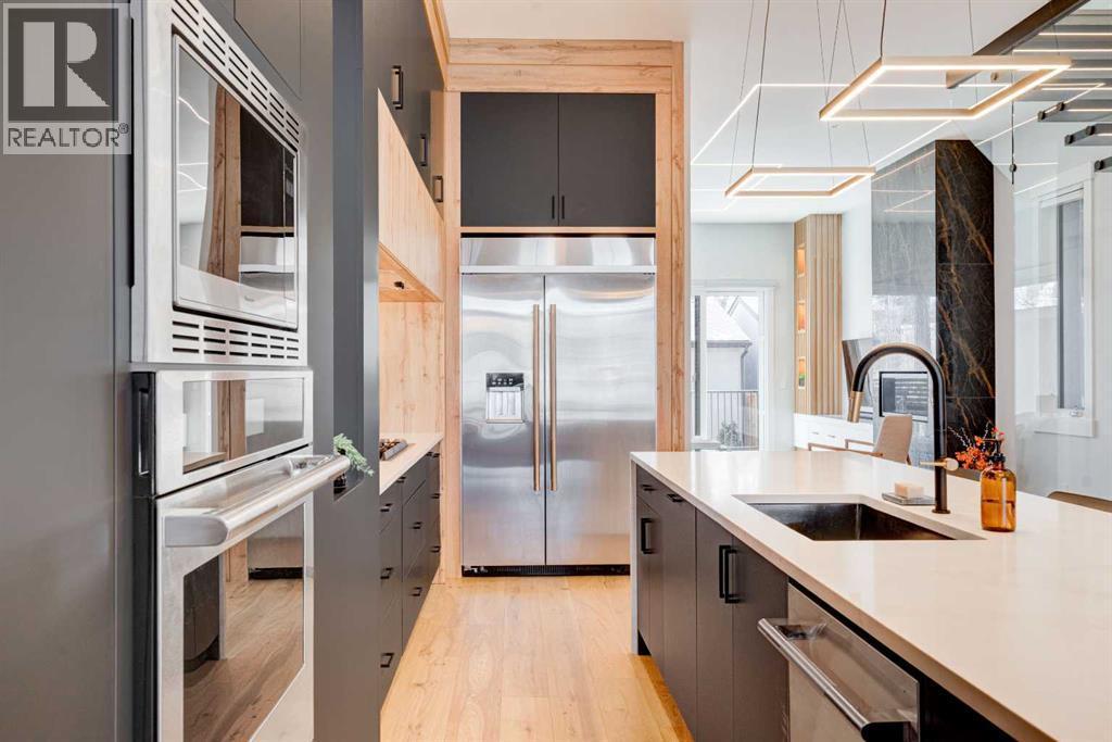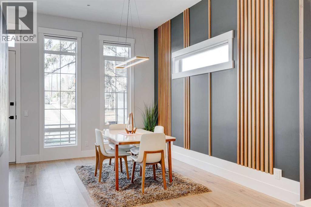 Step into refined luxury in this stunning modern home, perfectly situated in UPPER MOUNT ROYAL! Designed for effortless living, this 4-bed, 3.5-bath masterpiece offers endless impeccably crafted living space w/ high-end finishes and upgrades throughout! The striking brick exterior, lush artificial turf, and integrated lighting create an unforgettable first impression. Inside, the foyer welcomes you w/ soaring ceilings, wide-plank hardwood floors, and a stylish built-in bench w/ wood slat wall. A bright, open dining space w/ designer lighting and modern wood accented wall flows seamlessly into the high-end kitchen, a true showstopper w/ a massive waterfall quartz island, full-height flat panel cabinetry, and premium appliances. The sleek black and wood-accented cabinetry is complemented by under-cabinet lighting and island pendants that add a warm, inviting glow. The living room is anchored by a statement fireplace w/ floor-to-ceiling black marble w/ gold veining, creating a sophisticated yet cozy retreat. A wall of sliding glass doors extends the living space onto the deck, where extra-wide steps lead to the beautifully landscaped backyard featuring PRIVACY SCREENS, landscape lighting, and underground sprinklers for easy maintenance. An elegant powder room w/ a black vessel sink and a side mudroom w/ built-in storage round off the main level. A custom glass-enclosed staircase w/ open riser stairs and LED accent lights leads to the second floor, where the primary retreat is a true sanctuary. The spacious bedroom features modern ceiling lighting, arched windows, a sliding barn door, and a spa-inspired ensuite. The ensuite is a masterpiece w/ black and gold-veined marble, a freestanding tub, a glass-enclosed STEAM SHOWER w/ a rainfall head, and HEATED FLOORS for ultimate comfort. Two additional bedrooms, a sleek 4-piece bath w/ upgraded shower glass and heated floors, and a well-appointed laundry room w/ extra storage, a sink, and geometric tile flooring complete this level. The fully finished basement is the ultimate entertaining space, featuring a spacious media room w/ a built-in entertainment unit, a stylish wet bar w/ a full-height backsplash and wine storage, and an exercise area w/ rubber flooring and a mirrored wall. A fourth bedroom and another full bathroom w/ upgraded shower glass complete this level. This home is fully equipped w/ SMART HOME TECHNOLOGY, allowing you to control heating, cooling, lighting, security, and even the fireplace – all from your phone! The built-in sound system ensures seamless audio throughout, while Hunter Douglas AUTOMATED BLINDS add a touch of convenience. Additional features include A/C, security cameras, and an insulated DOUBLE GARAGE roughed-in for a gas heater. Located just steps from 17th Ave, this home offers unbeatable access to top restaurants, cafés, shopping, parks, and some of Calgary’s best schools. Enjoy the perfect blend of urban convenience and upscale living in one of the city’s most sought-after neighbourhoods! (id:6769)