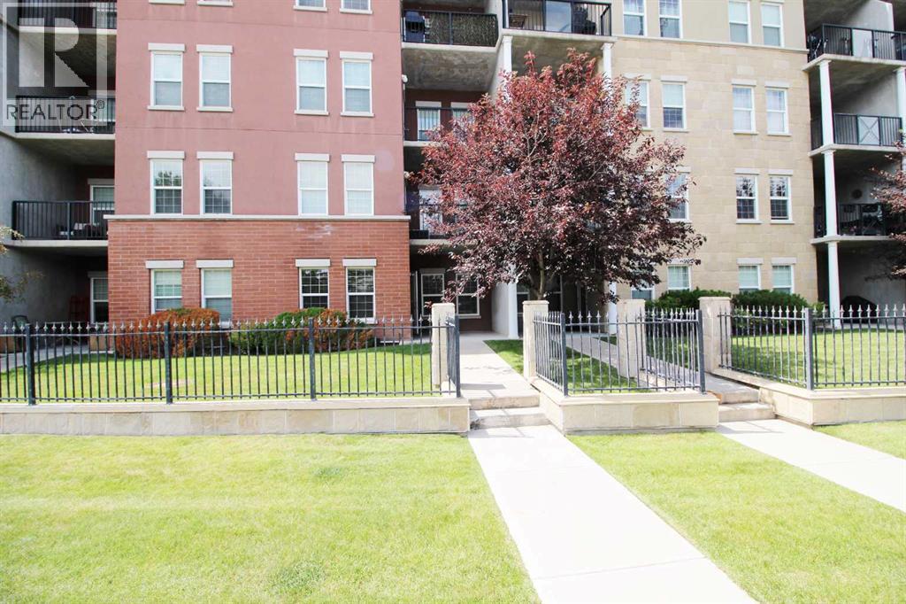 Step into the enchanting allure of Gateway Southcentre, where this beautifully upgraded 1 bed + den ground floor sanctuary awaits. Boasting 9-foot ceilings, large windows, luxury flooring and a large private patio overlooking a quiet street, this residence radiates charm and grace. The kitchen offers S/S appliances, custom cabinets, granite countertops plus a large center island/breakfast bar perfect for culinary enthusiasts and social butterflies alike. Completing this lovely home is a good sized bedroom, 4pc bath and laundry area. Additional bonuses: ALL utilities included in the condo fees plus a host of amenities including one titled U/G parking stall with a large storage cage in front plus a fitness centre, party rooms, guest suites and a huge central courtyard perfect for enjoying the beautiful outdoors. Located steps away from Southcentre Mall, City Transit/LRT station, schools, parks, restaurants and easy access to main roadways. (id:6769)