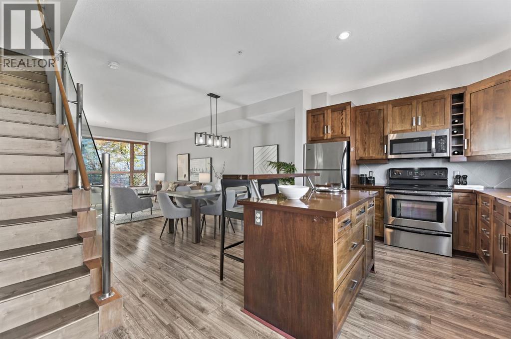 Welcome to this beautifully maintained townhome ideally located in the heart of historic Bridgeland — just steps from local shops, trendy restaurants and pubs, parks, the Bow River Pathway, and public transit. Downtown Calgary and the Zoo are only minutes away, making this an unbeatable location for urban living.Your private front entrance opens to a bright, open-concept main floor featuring a spacious living room, dining area, and a well-designed kitchen with ceiling-height cabinets, ample counter space, stainless steel appliances, and an eating island. A convenient 2-piece powder room completes the main level, all enhanced by 9-foot ceilings — perfect for everyday living and entertaining.The second floor offers two generously sized bedrooms, each with its own 4-piece ensuite, positioned on opposite ends of the unit for optimal privacy — ideal for guests, roommates, or a home office. The south-facing bedroom also includes a private balcony overlooking the courtyard.Additional features include in-suite laundry, a titled underground parking stall, a secure storage locker, and access to a separate bike storage room. The building is exceptionally well-managed and showcases true pride of ownership in one of Calgary’s most desirable inner-city communities. (id:6769)