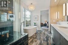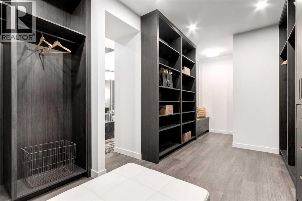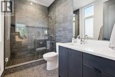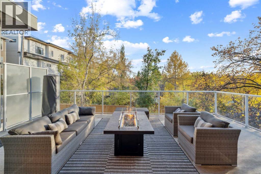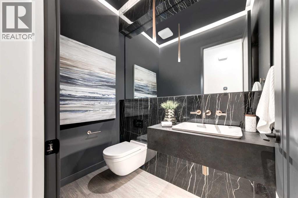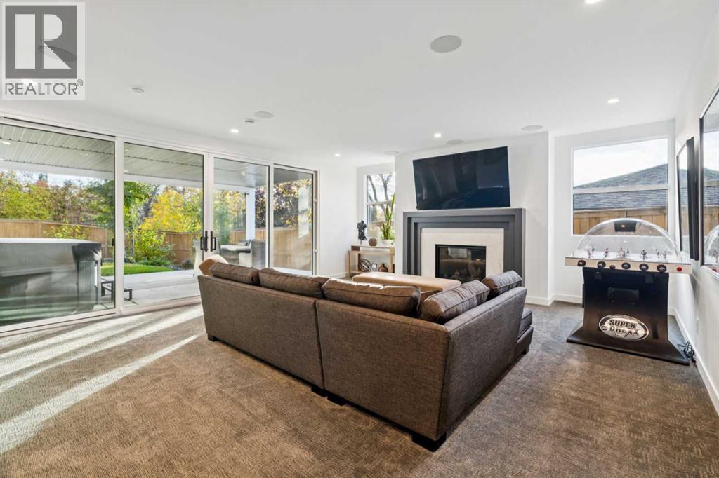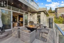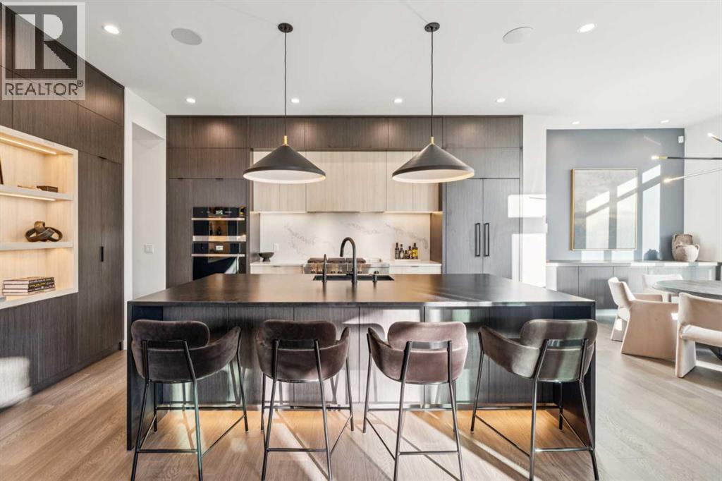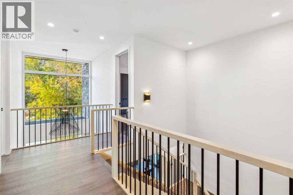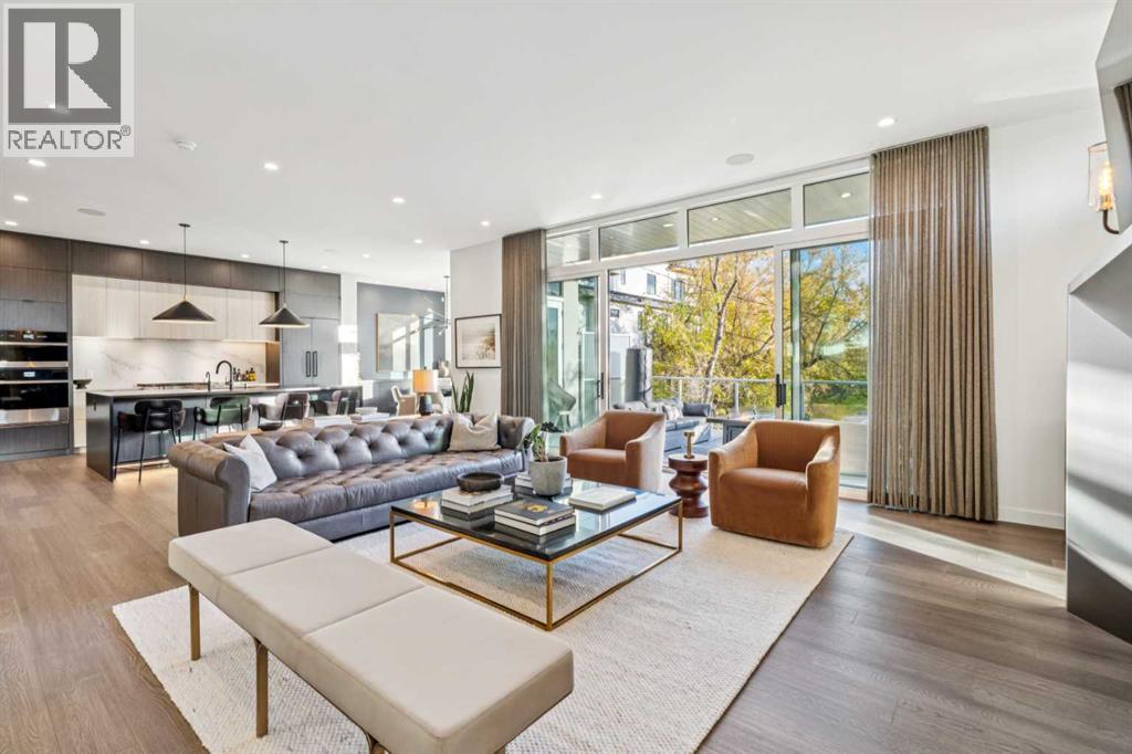 Tucked away in an exclusive enclave just moments from Kensington and the downtown core, this modern architectural residence offers refined living in a truly exceptional setting. Designed for both comfort and sophistication, the home combines thoughtful design, superior craftsmanship, and cutting-edge systems throughout. Built to the highest standards, it features triple-pane windows, 2-zone hydronic in-floor heating in the basement, finished triple garage with floor drains, and a dual-zoned HVAC system. Extensive concrete retaining walls and planters frame the property, while Lutron lighting control, an 8-zone sound system with integrated ceiling and outdoor speakers, and 7.2 surround sound in the recreation room elevate the living experience. Porcelain tiles imported from Italy, Caesarstone countertops, and solid core interior doors reflect the quality that defines every detail. The main level showcases expansive open-concept living with 10-foot ceilings and floor-to-ceiling south-facing windows that flood the home with natural light. The kitchen is a true centrepiece—equipped with integrated JennAir appliances including a 48” gas range top, and a walk-in coffee bar/pantry with prep sink and wine fridge. A striking glass wine wall with floating racks separates the formal dining area, which comfortably hosts 12–14. The stone-clad fireplaces anchors the living room, while a glass-enclosed main floor den provides a serene workspace. Step outside to the 25’ x 16’ deck overlooking a secluded, landscaped south yard surrounded by mature trees. Upstairs, three spacious bedrooms each feature a private ensuite. The primary suite is a sanctuary with a spa-inspired 5-piece ensuite bathroom with heated floors, custom window coverings, an impressive 21-foot walk-in closet with extensive built-ins, and a private south-facing balcony offering sweeping and serene views of the Bow River Valley. A large, well-appointed laundry room completes the upper level. The walk-out basement inc ludes a guest suite with attached bath, a recreation room with gas fireplace and wet bar, and access to a covered patio and your oversized triple garage with heated floors. The home has security cameras, central vacuum, irrigation, EV charging, and hot tub hookup. Perfectly positioned for an active lifestyle, this residence is steps from the Bow River pathways, West Hillhurst tennis and pickle-ball courts, and offers quick access to 16th Avenue for effortless weekend escapes to the mountains. Minutes from top schools, hospitals, shopping, the C-train, and downtown Calgary—this is contemporary living at its most complete and luxurious. (id:6769)