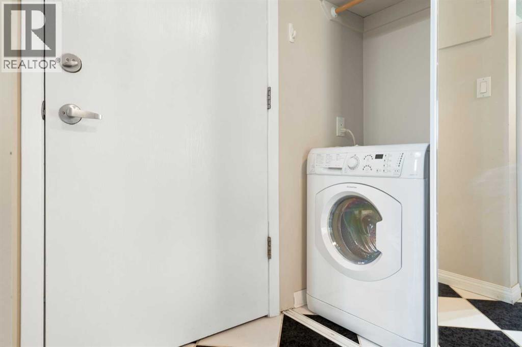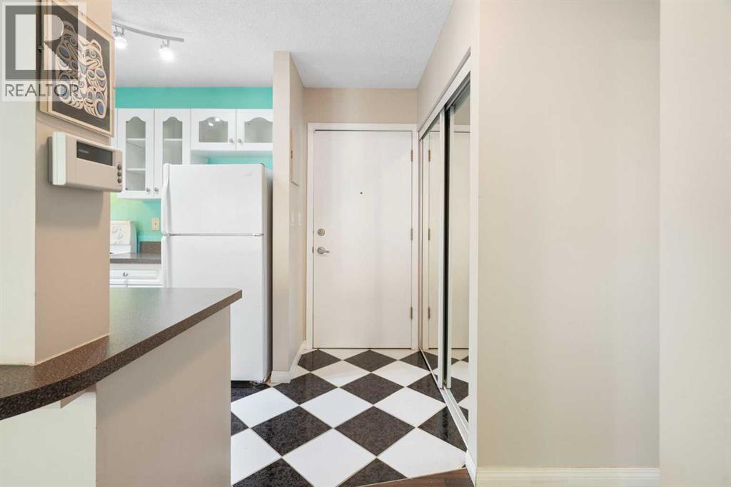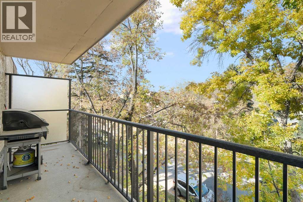 Trendy and bright top-floor walk-up condo in the heart of sought-after Sunnyside! This spacious 637 sq. ft. third-floor walk-up offers the perfect blend of inner-city living and everyday comfort. The open-concept layout features a generous living room with laminate flooring that opens to a large northwest-facing balcony—a peaceful spot surrounded by mature trees. The kitchen, accented with retro tile flooring, adjoins a cozy dining area—ideal for casual meals or entertaining friends. The primary bedroom comfortably can accommodate a Queen-sized bed, and the unit includes in-suite storage plus a convenient "all-in-one" washer/dryer. Enjoy peace of mind in this well-managed 15-unit complex. Small cats/dogs with board approval are permitted. Building is scheduled for fresh paint and new carpet in 2026. The balconies and patio doors have also have been replaced over the last 3 years. The board has been diligent about following the reserve fund study. Additional amenities include bike storage and shared laundry facilities in the basement. Assigned parking is partially covered at the rear of the building. Immediate possession is available. Walking distance LRT, bus, Bow River, biking paths, and a plethora of eateries, shops & amenities. Enjoy Inner city living at an affordable price. (id:6769)