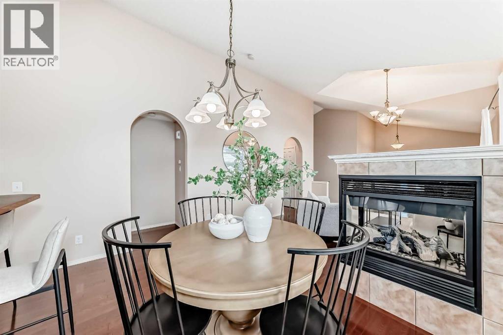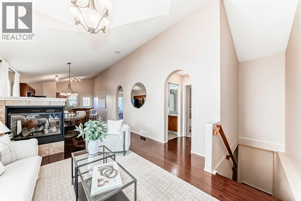 Hello Gorgeous! Welcome home to this beautifully maintained 3 bedroom, 3 bathroom property offering over 1943 sq. ft. of fully developed living space. From the moment you step inside, you’ll love the bright, welcoming atmosphere, highlighted by vaulted ceilings, hardwood floors, and an open-concept main floor designed for modern living. The inviting living room features a three-sided gas fireplace, creating a cozy ambiance that connects seamlessly to the kitchen and dining areas. The spacious primary bedroom offers a walk-in closet and four-piece ensuite, while a generous flex room on the main floor provides the perfect space for a home office, guest suite, or creative studio — the possibilities are endless! Downstairs, the fully finished basement expands your living space with a large recreation area, second gas fireplace, additional bedroom, full bathroom, laundry room, and ample storage. Step outside to your private backyard oasis with a freshly stained, two-tier deck — perfect for entertaining, barbecues, or simply relaxing. Additional features include air conditioning for year-round comfort. Nestled on a quiet, family-friendly street, this home is ideally located close to schools, parks, shopping, and Airdrie’s extensive walking path system. This home truly has it all — space, comfort, and a welcoming charm you’ll feel the moment you walk in. (id:6769)