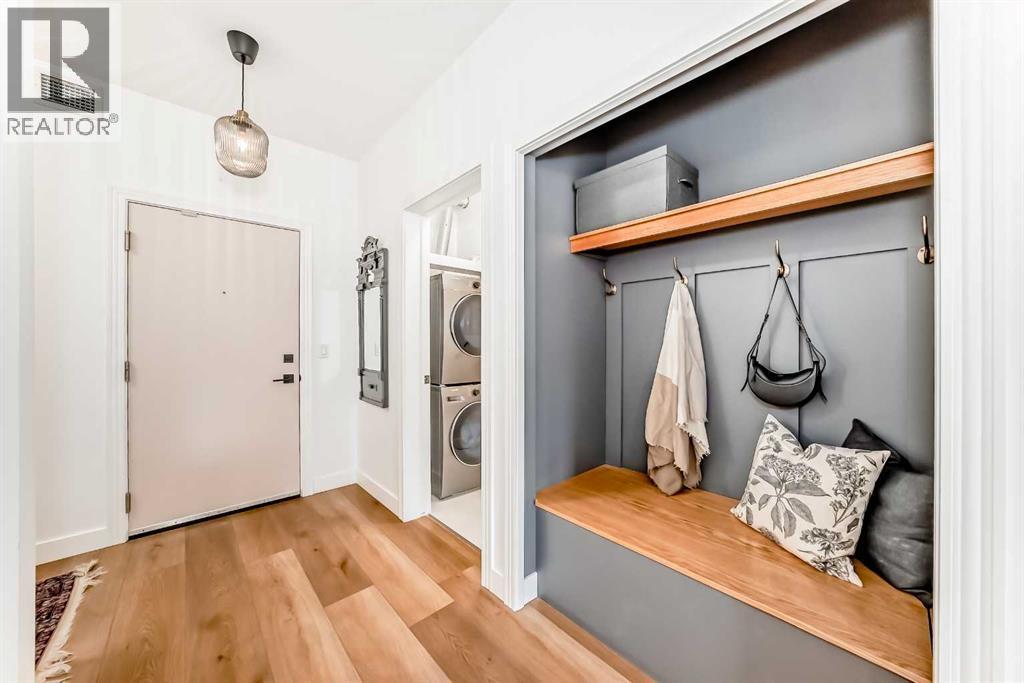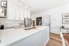 Welcome to Pearce Gardens and this beautifully renovated south facing one bedroom plus den condo in the trendy community of Inglewood. This home was completed renovated three years ago and has been immaculately maintained since. As you enter the unit you are greeted by a spacious entrance with 9' ceilings, a conveniently located den and a wall of cabinetry for plenty of extra storage. The new custom kitchen features ceiling height sleek white shaker cabinetry, quartz countertops, stainless steel appliances and beautiful bronze hardware and faucet. The ample size dining area flows into the spacious sunny large living room which offers a gas burning fireplace and a door to access the south facing patio with bbq gas hookup. The spacious bright bedroom offers new carpet, a large window, and a walk through closet with custom closet organization on both sides to maximize your storage. The bathroom has been completed renovated with new tub, shower tile, floor tile, toilet, custom cabinetry, faucets and lighting. The unit is complete with in-suite laundry with a full size stacked washer and dryer. Renovations to this unit include vinyl plank flooring throughout, new doors, new baseboard, new lighting and all painted in a fresh crisp white. This unit includes one titled parking space in the underground heated parkade and a secure storage locker. The complex is professionally managed and includes access to a fitness centre and a large party room with a prep kitchen and outdoor patio and garden area. Enjoy inner-city living surrounded by mature trees, minutes walk to the river pathways offering easy access to downtown, walkability to trendy Inglewood's shops, restaurants, venues, breweries and more. Living in Inglewood offers great access to all major transportation routes, Inglewood bird sanctuary and river pathways. (id:6769)