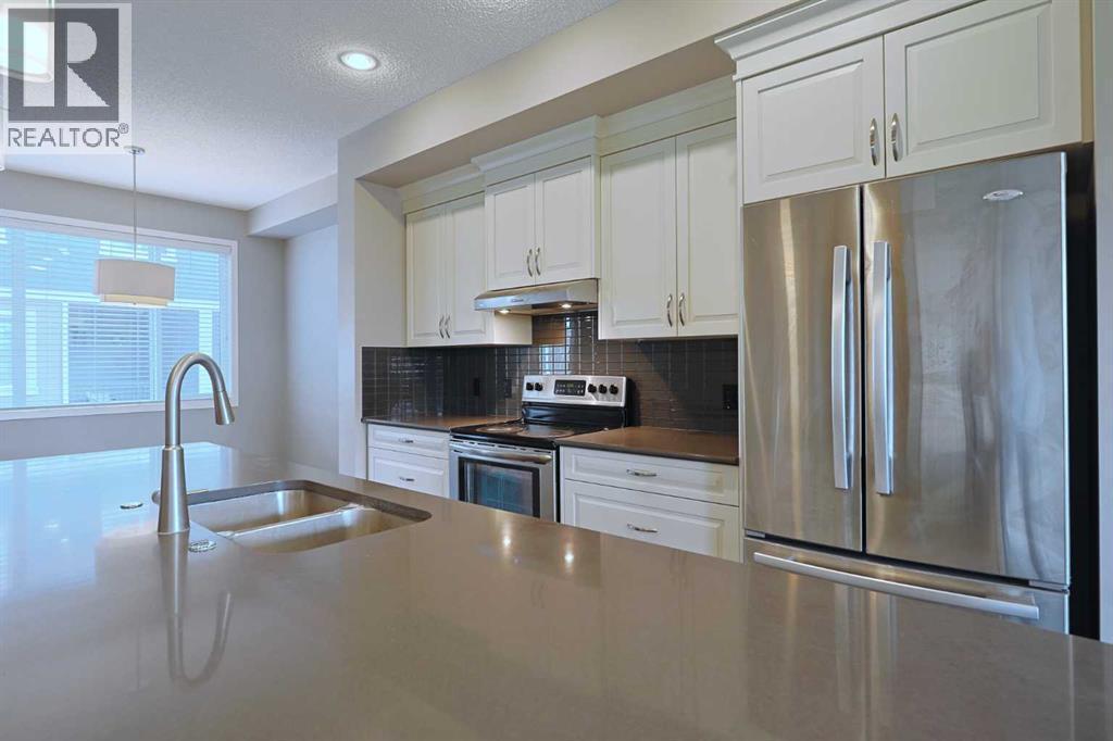 Don’t miss out on this chance to make your new home in this stylish townhome in THE ELEMENTS by Cedarglen, here in the popular family community of Panorama Hills. Available for quick possession, this fantastic 3 storey condo enjoys hardwood floors throughout, designer kitchen with quartz countertops, 2 bedrooms, 2.5 bathrooms & 2 car garage for your exclusive use. Complemented by 9ft ceilings, you'll love the open concept main living area on the 2nd floor with its rich hardwood floors & big windows, South-facing living room with alcove for your home office, dining area with access onto the covered balcony & sleek kitchen with huge centre island & Frigidaire/Whirlpool stainless steel appliances. On the top floor there are 2 big bedrooms – each with walk-in closets & full ensuites. The ensuite in the North-facing bedroom has a shower/tub combo & the South-facing bedroom has partial downtown views & ensuite with walk-in shower. Between the bedrooms is a large walk-in closet & another closet for your linens & towels. On the ground floor is the laundry/utility room with stacking Maytag washer & dryer, & access into the 2 car garage. Additional features include Hunter Douglas blinds, tankless hot water system, quartz counters in the upper level bathrooms, natural gas line for a BBQ on the balcony, central vacuum system & front patio. Monthly condo fees include grass cutting & snow removal, & pets are okay on board approval. A park with sports court & playground is walking distance from your front door, & with its prime location you’ve got easy access to area schools & shopping, Country Hills Town Centre retail complex, VIVO Centre, Deerfoot & Stoney Trails. (id:6769)