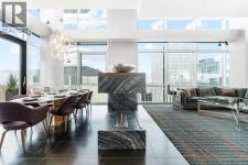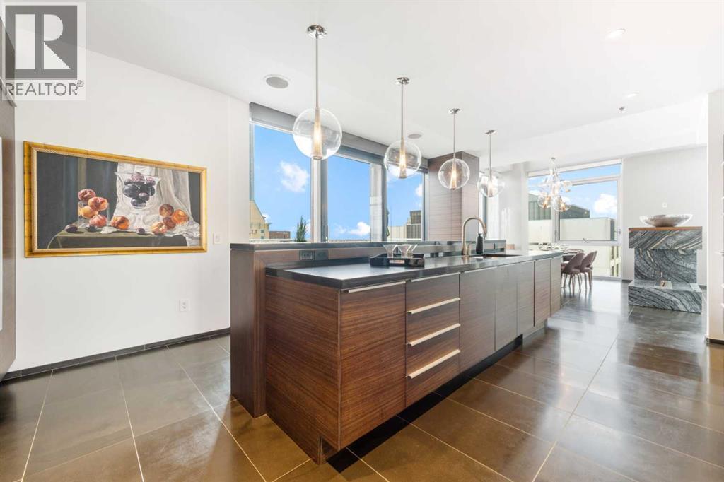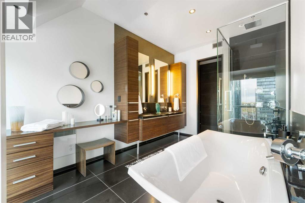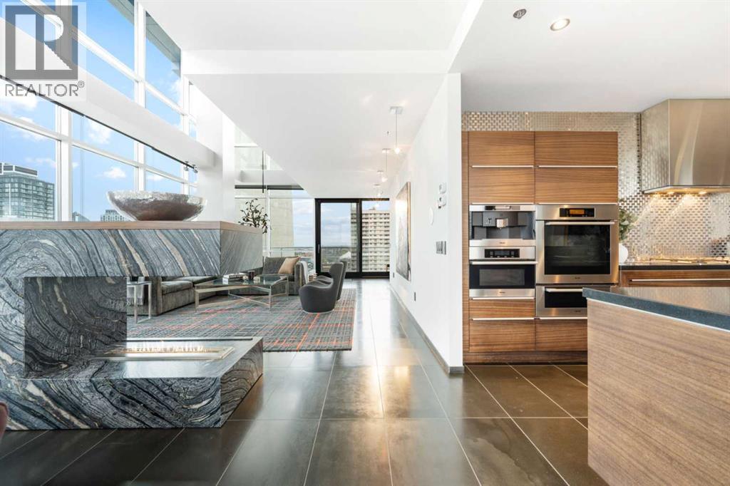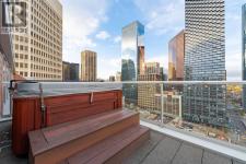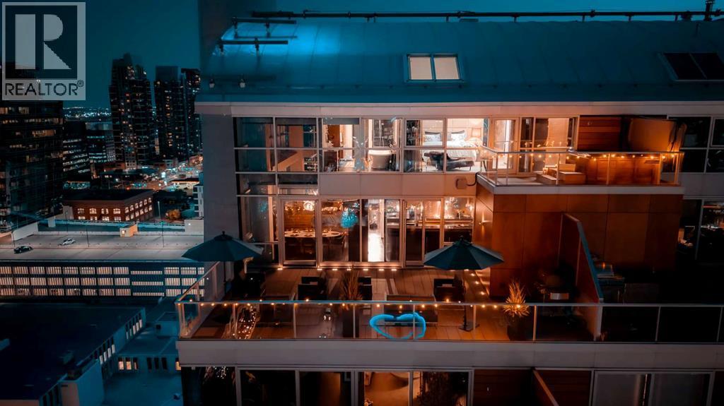 Executive Two-Story Penthouse with Expansive Downtown Views of Calgary and beyond. Showcasing breathtaking North, South and East exposure. Ideally located next to Calgary's Arts Common Building, Glenbow Museum, Calgary Tower, the historical Palliser Hotel, as well as Stephen Avenue Street Mall with its endless restaurants, cafes, shops and lounges. The residence at the Le Germain offers a true elevated lifestyle with world-class amenities such as Concierge, Spa and Gym access, housekeeping services, dry cleaning services, 24/7 building surveillance, pet wash, car wash, maintenance, as well as a hotel account privileges and in-suite dining delivered to your door from the award winning Charcut Restaurant all at your fingertips. With two elevators taking you to the 20th floor, you will enter 2,399 sq.ft. of luxury living with soaring ceilings through out including a vaulted living room, custom fireplace featuring leathered silver wave marble and Zebra Walnut built in cabinetry through out. The chef-inspired kitchen offers Miele appliances including built-in oven, 5 burner gas cook top, warming drawer, microwave/convection oven, range hood, built-in coffee machine, dishwasher and refrigerator. Also featured is the stackable Asko Washer and Dryer and Cavavin by LG wine refrigerator. With black quartz countertops adorning the cooking space as well as the expansive island. With endless built in storage along the West wall including the Concierge closet to receive your deliveries and dry cleaning. Across from the Concierge closet enjoy the separate laundry room where the custom cabinetry continues, including a convenient laundry chute from the second floor down. Under the stairwell you will find in-suite storage. Expand your living space through the nine-foot doorway leading to a 630 sq.ft. (approx.) terrace, one of three balconies enhancing the skyline views, from the second 39-ft. long (approx.) south facing balcony enjoy spectacular views of the Calgary Tower and beyon d. Upstairs, the primary suite offering stunning north facing views, a five-piece ensuite including an oversized shower, dual vanities and soaker tub. Following through with the custom Zebra walnut wood cabinetry into the walk-in closet, with built-in safe and enjoy your private deck with hot tub, overlooking the lively Stephen Avenue Street Mall. The guest suite features south-facing views providing comfort and privacy with its own three-piece ensuite. Across from the guest suite find a coinvent office or study area with a custom desk. Enjoy three separate air conditioning units, one for each level of the suite. Included are two assigned parking stalls, with use of a third and one storage unit. Owner insurance required on improvements to unit and personal contents. Truly sophisticated urban living at its finest. (id:6769)