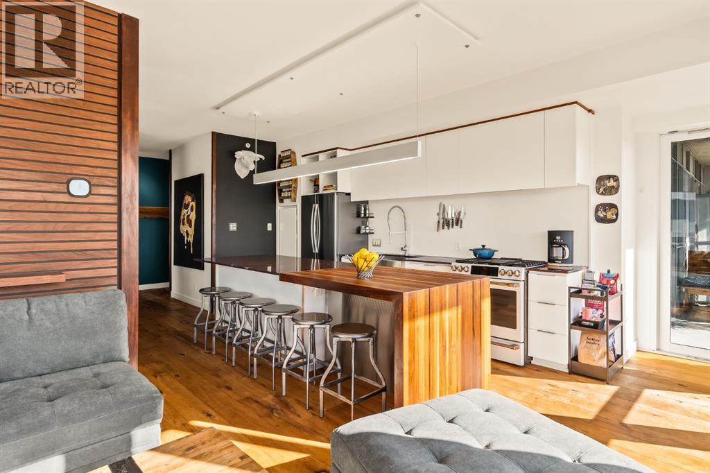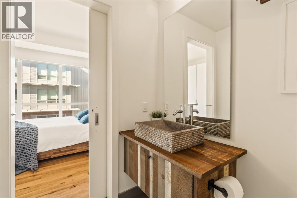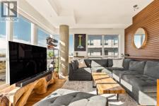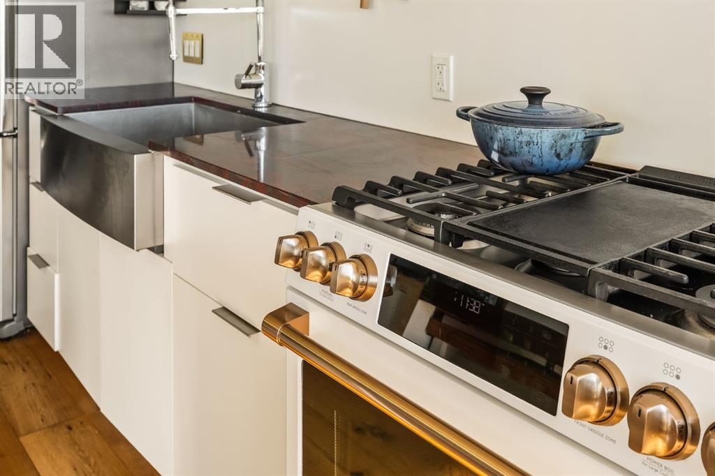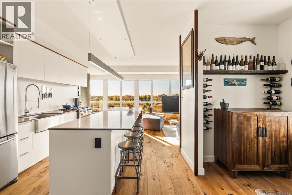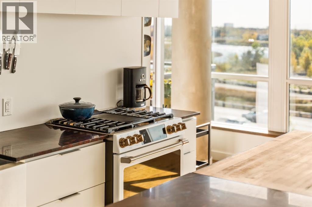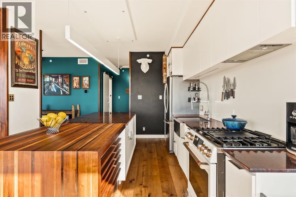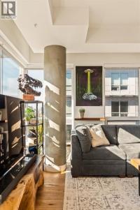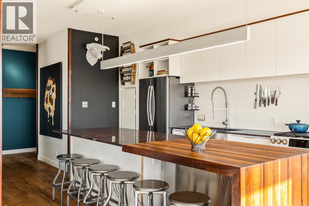 In Calgary’s most storied neighbourhood, where the Bow River bends around tree-lined paths and history meets creativity, lies a home that captures the essence of bespoke living. This remarkable SoBow residence, featuring one of the most desirable floor plans in the entire complex, is not just a place to live, it’s a work of art shaped by craftsmanship, texture, and intention.From the moment you enter, every detail has been curated to inspire. A beautifully redesigned front entry offers custom cabinetry, integrated shelving, and a built-in bench, a thoughtful welcome that blends elegance with everyday function. The kitchen, anchored by rare Iron Red stone countertops and a solid hardwood waterfall butcher block island, is both sculptural and soulful. A GE Café gas stove and basin sink with garburator bring culinary precision, while the extended island invites gatherings and conversation.Throughout the home, subtle artistry abounds. Custom wood trim frames every windowsill, walnut corner edging defines the main spaces, and a stunning feature wall with floating beverage shelves transforms the living room into a refined retreat. Each of the three bathrooms is elevated by handcrafted vanities topped with bespoke vessel sinks, while Buster + Punch switches and designer lighting add a quiet note of luxury.This unit also offers exceptional convenience, including two titled underground parking stalls in a heated garage, one titled storage locker, and secure bike storage, a rare and valuable combination for inner-city living.Set within SoBow, a visionary community designed by NORR Architects to honour Inglewood’s industrial past while embracing its modern renaissance, residents enjoy a host of premium amenities. A full-time concierge, state-of-the-art fitness facility, weight room, yoga room, owners lounge, and media room extend your living experience well beyond your front door. Surrounded by 14 acres of landscaped courtyards and Aspen groves, with the Bow River and Pearce Estate Park just steps away, SoBow offers an unmatched lifestyle.Located in the vibrant, sought-after community of Inglewood, where amenities, restaurants, shopping, breweries, and parks are all within walking distance, this home embodies the perfect balance between dynamic city living and serene natural beauty.This is a home where craftsmanship meets character, where nature meets design, and where the timeless spirit of Inglewood finds its most sophisticated expression. (id:6769)