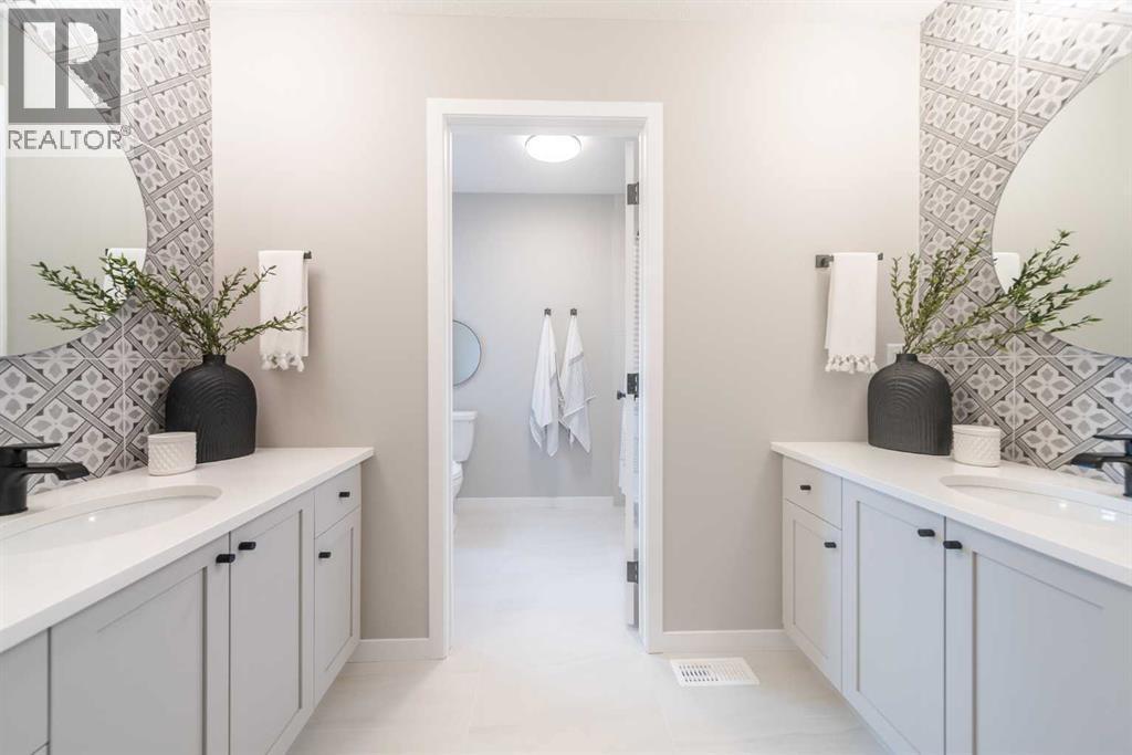 FORMER SHOW HOME ALERT | Nestled in the vibrant, family-friendly community of Livingston, this former Cedarglen Homes show home is the definition of style, function, and craftsmanship. Offering a fully developed legal basement suite, and designer upgrades at every turn, this home is truly one of a kind. Step inside and immediately feel the warmth and sophistication that define this property. The main floor features an open-concept layout with soaring 8' interior doors, glass railing, and luxury vinyl plank flooring that flows seamlessly throughout. The living room steals the spotlight with a vertical shiplap feature wall framing a tiled electric fireplace, creating the perfect blend of modern and cozy. The chef’s kitchen is both stunning and functional, showcasing quartz countertops, two-tone cabinetry, a large central island, and a full working kitchen for extra prep and storage. The dining nook opens onto your oversized deck, perfect for hosting summer BBQs or enjoying quiet mornings in the sun. A main floor bedroom and full bath offer flexibility for guests, an office, or multi-generational living. Upstairs, the design continues to impress. The primary retreat is a true sanctuary featuring a spa-inspired ensuite with a custom tiled shower, soaker tub with tile ledges, and dual sinks, all finished with quartz countertops. The walk-in closet connects directly to the laundry room, making everyday life effortless. Two additional bedrooms each feature their own walk-in closets, and a bonus room plus a built-in desk area provide the perfect spaces for work, play, or relaxation. The fully finished legal basement suite offers even more possibilities - complete with a separate kitchen, living area, bedroom, and full bathroom. This space is ideal for extended family, guests, or rental income. Every inch of this home reflects thoughtful design and quality finishes from upgraded hardware and lighting to its seamless blend of comfort and modern flair. Outside, enjoy your comp leted oversized deck, perfect for entertaining or taking in the peaceful surroundings of Livingston - one of Calgary’s most dynamic new communities. Residents here enjoy access to the Livingston Hub, a state-of-the-art community centre featuring a skating rink, splash park, gymnasium, tennis courts, and event spaces. You’ll also love the parks, pathways, and playgrounds woven throughout the neighbourhood, plus quick access to Stoney Trail and Deerfoot Trail. If you’ve been searching for a home that combines designer elegance, practical functionality, and unbeatable value, this is it. Move-in ready, meticulous craftsmanship, and absolutely stunning - this Cedarglen show home is ready to welcome its next owner. Book your private showing today and experience what life in Livingston has to offer. (id:6769)
