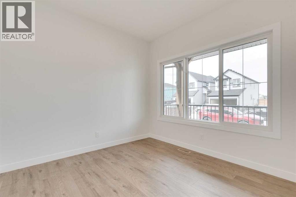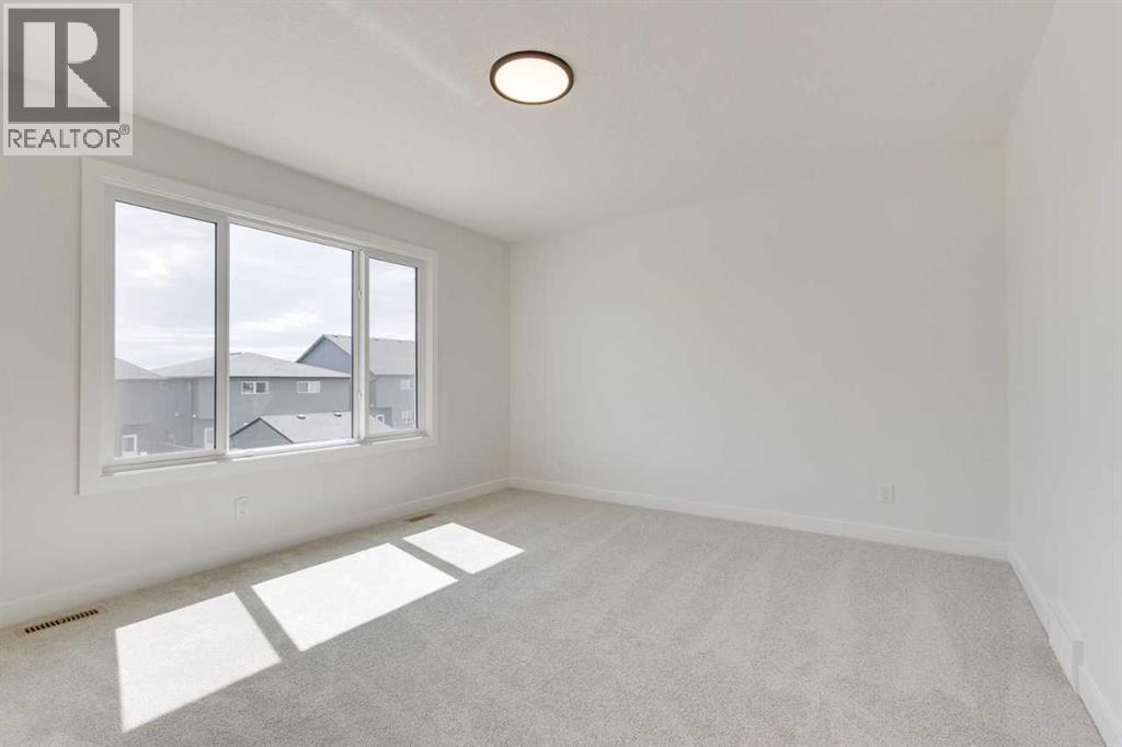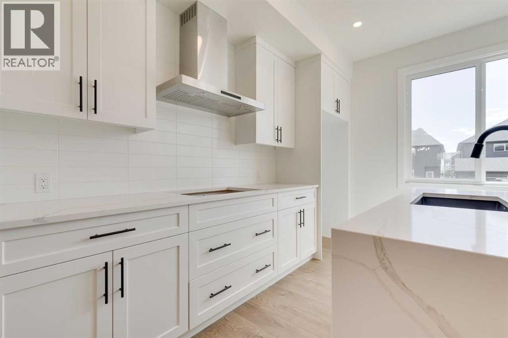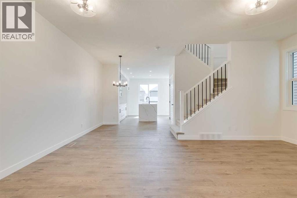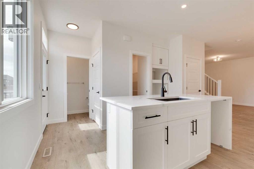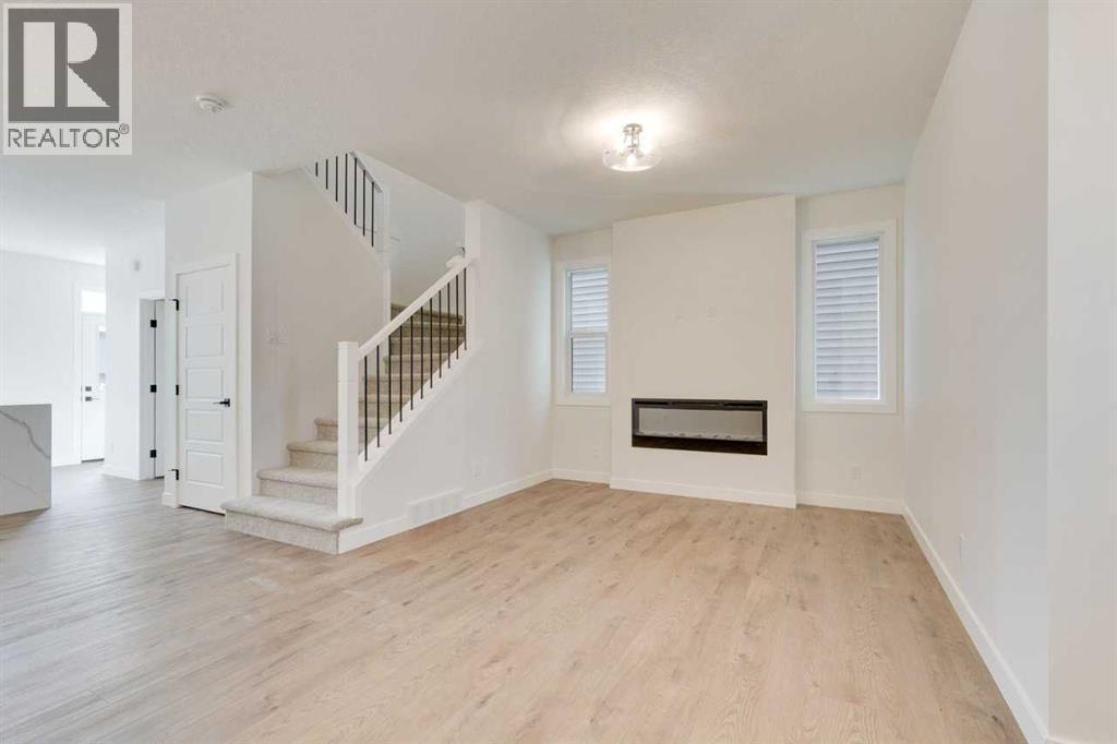 Discover The Onyx by Sterling Homes Calgary, a modern and thoughtfully designed home built by an experienced builder with over 70 years of history. This home features designer-selected finishes, energy-efficient construction, and smart-home technology for contemporary living.The kitchen is equipped with built-in stainless steel appliances, quartz countertops with a waterfall-edge island, and a walk-in pantry. The main floor includes a versatile den and a side entrance. Upstairs, enjoy a spacious loft with vaulted ceiling and an electric fireplace for added comfort. The primary ensuite offers a tiled walk-in shower and a vanity with full-height drawers, while LVP flooring adds durability throughout the bathrooms and laundry area. Home also features a 11' x 11' rear deck.This Built Green certified home includes triple-pane windows, a high-efficiency furnace, a solar chase for a future-ready setup, and an electric-vehicle charger rough-in. Smart-home features include a programmable thermostat, doorbell camera, smart front-door lock, and motion-activated lighting, all connected through a central smart-home hub. Photos are representative. (id:6769)
