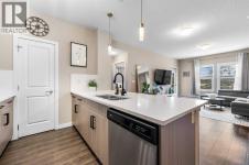 Welcome to your new home, a stunning 2-bedroom, 2-bathroom condo offering over 900 square feet of beautifully designed living space. True pride of ownership visible throughout, featuring a spacious open-concept layout with 9-foot ceilings and an abundance of natural sunlight pouring through large south-facing windows. The modern kitchen is complete with sleek quartz countertops, stylish cabinetry, stainless steel appliances, and a large walk-in pantry. The generously-sized breakfast bar comfortably seats four. The open living room with its luxury vinyl plank flooring offers plenty of room to create your ideal living area. The primary suite is designed as a private retreat, featuring a spacious walk-through closet and a 4-piece ensuite. The second bedroom is versatile and can serve as a guest room, workout space or home office. The second bedroom is conveniently located next to a second 4-piece bathroom, providing ideal privacy and functionality. For added convenience, this home includes an in-suite full-size stackable washer and dryer, as well as a dedicated storage locker inside the building. Step outside to your spacious balcony — the perfect spot for morning coffee or unwinding after a long day. No neighbours behind lead to both extra privacy and a more peaceful space. With an assigned parking stalls and plenty of visitor parking, plus a common playground in the courtyard, this condo provides comfort, convenience. The quiet, family-friendly building is situated in the sought-after community of Cranston, offering a wide range of amenities and recreational opportunities for all ages. Enjoy easy access to numerous parks, walking paths, and the breathtaking Fish Creek Park and Bow River. Residents will appreciate being just minutes from shopping, a movie theatre, and the South Health Campus. Cranston also boasts excellent schools, including 3 public and 2 Catholic schools, and is minutes away home to the largest YMCA. Commuting is a breeze with quick access to Deerf oot Trail, Stoney Trail, and public transit just minutes away. Don’t miss out on this incredible opportunity—schedule your showing today! (id:6769)