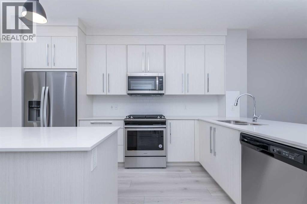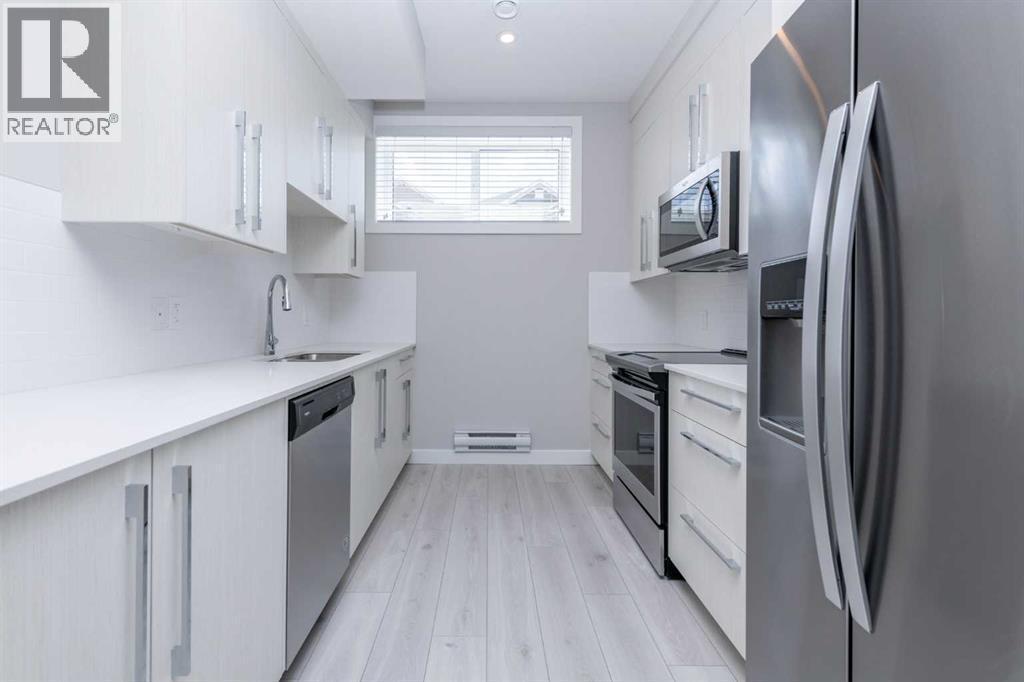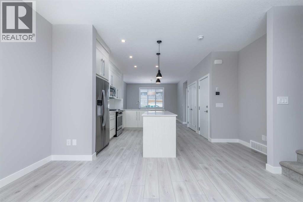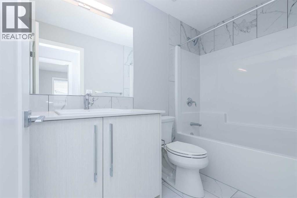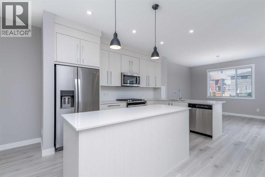 This beautifully maintained semi-detached home in Redstone offers a bright and spacious main floor layout with dedicated dining and living areas, plus a convenient half bathroom. The full-size kitchen features a light colour scheme, quartz countertops, and a complete stainless steel appliance package.Upstairs, you’ll find three generous bedrooms and two full bathrooms, including a primary suite that easily accommodates a king-size bed and features a private ensuite with dual vanity sinks. The second-floor laundry adds everyday convenience.The legal, city-registered basement suite is professionally finished and features high ceilings, a bright open layout, one spacious bedroom, a full bathroom, a modern kitchen with quality appliances, and in-suite laundry — all with a private entrance with a concrete walkway for added privacy.Enjoy the landscaped backyard and deck, perfect for relaxing or entertaining. A detached double garage completes this fantastic property.Located in the vibrant community of Redstone, this home is close to schools, parks, shopping, and all amenities, with quick access to major roads and CrossIron Mills. (id:6769)